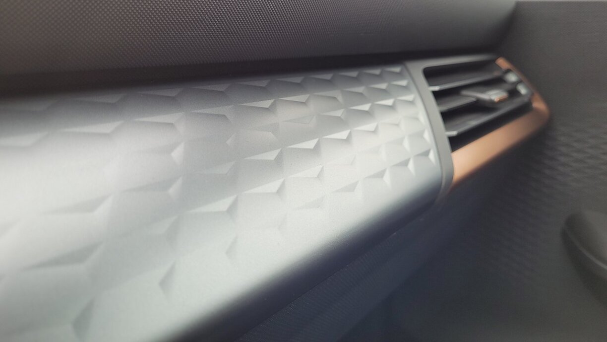 Am Interieur geet et dann och weider. Ëmmer nees falen engem 3D-Designelementer op, sief et um Table de Bord oder um Dierpanneau, déi un eng Raut oder och un e Feil erënneren. Kuckt iech et selwer op de Fotoen un. Déi Designelementer gesäit een iwwregens och baussen un der C-Sail vum Auto.
