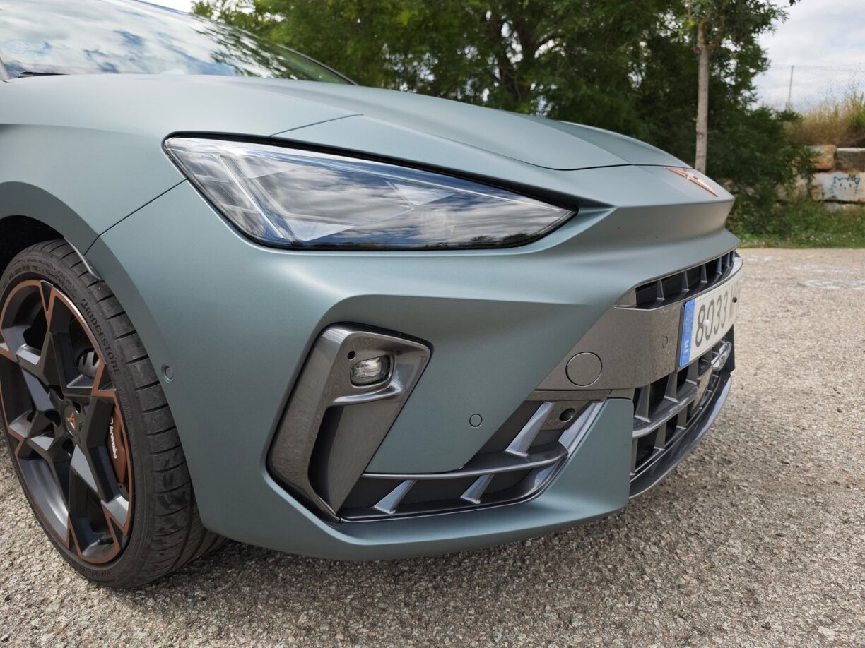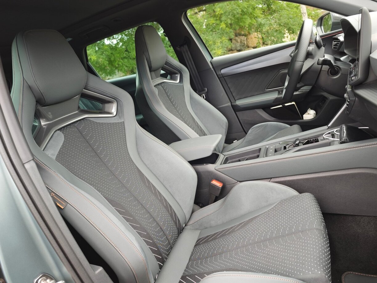 Virun allem un der Front ass de Facelift vu Leon a Formentor ze erkennen. Nei sinn elo d’Matrix-LED-Luuchten déi d’Designsprooch mat hiren Dräiecker opgräifen an un den Tavascan erënneren. Geännert gouf och de Kühlergrill; d’Loftaläss si bal verschwonnen an de Cupra-Emblem ass erop op d’Motorhauf gewandert. Sharknose, nenne se den Design bei Cupra: e klenge Changement, dee béid Modeller méi sportlech wierke léisst. Hannen un der Mall gëtt et dann nach en LED-Liichtband mat beliichtem Markelogo an nach méi Dräiecker.