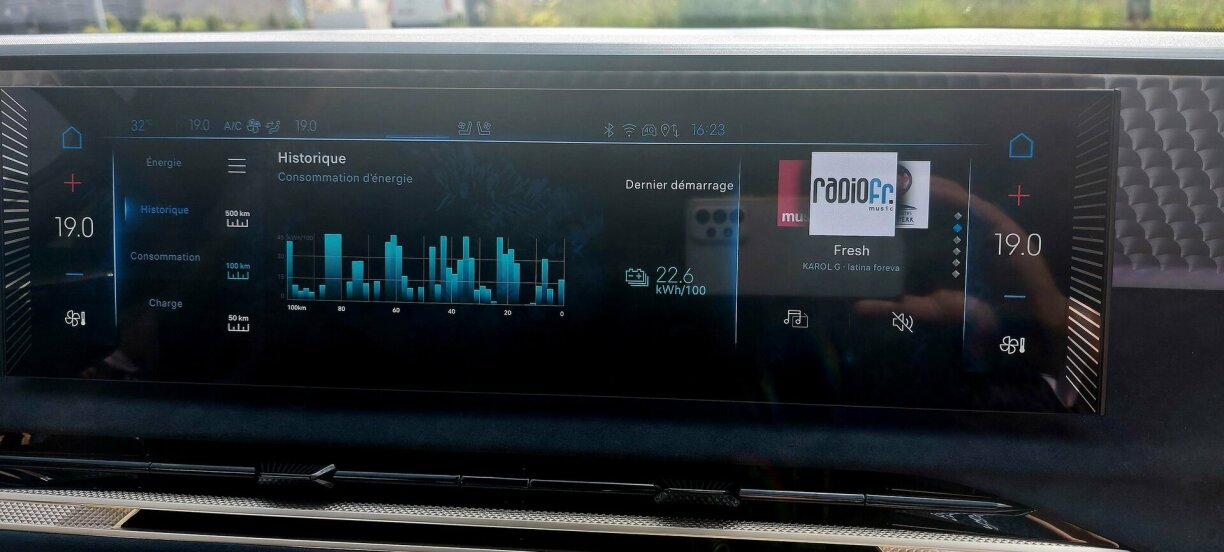 E bëssche futuristesch den Tableau de bord mat allem wat Info an Entertainment grad hir ginn.