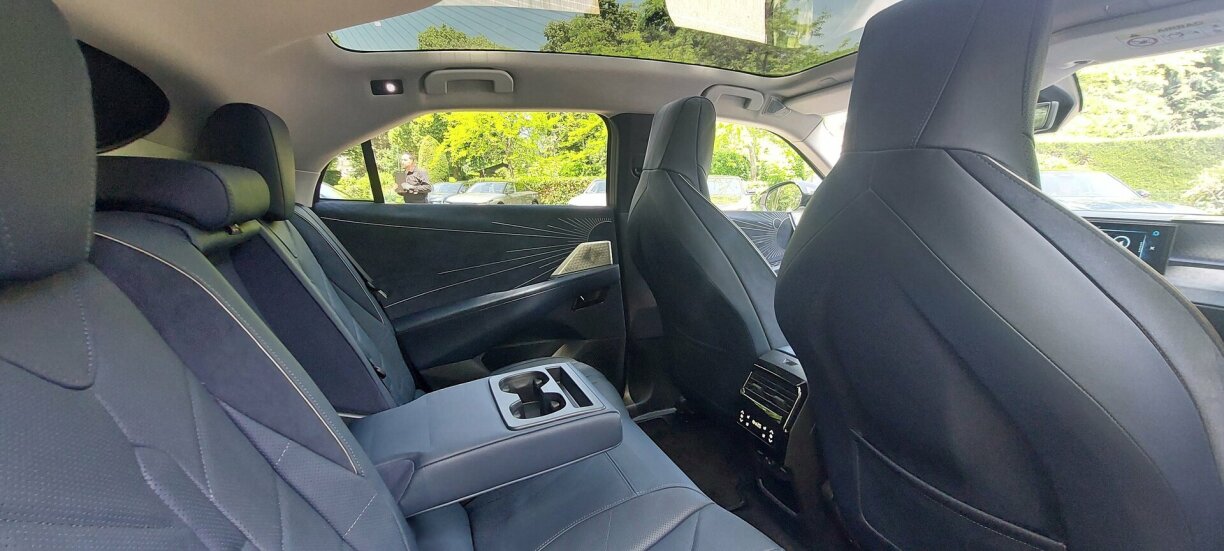 D’Sëtzer, scho bal Fauteuilen, bidde vill Confort, zumindest an der éischter Rei. An der zweeter sëtzt ee leider net esou kamoud wéinst der Batterie. Schued grad fir esou eng nobel Limousinn.