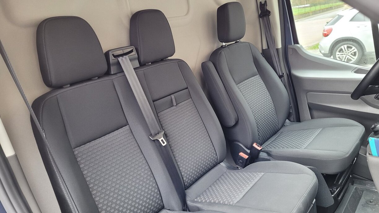 Fueren deet sech d’E-Transit nawell zimmlech gutt. Anescht wéi verschidde Konkurrenz-Produiten, gëtt bei der Transit déi hënnescht Achs ugedriwwen. Den Héichspannungssystem ass vir ënnert dem Capot, iwwerdeems d’Batterien tëscht den zwou Achsen ënnerbruecht sinn. Dat suergt fir eng homogen Gewiichtsverdeelung, wat sech och op d’Fuerverhale positiv auswierkt.