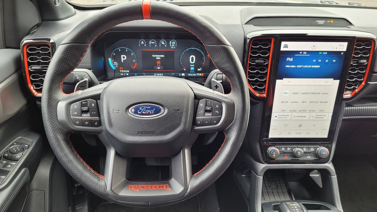 Praktesch ass d’360°-Kamera, well Parkplaze wierken definitiv wéi wa se agaange wieren, wann ee mam Raptor wëll parken. D’Vitess déi engem als erlaabte Vitess ugewise gëtt, war dacks net déi, déi real op deene Stroossen erlaabt war. Dorobber sollt ee sech also net verloossen. Positiv ze ernimme bleift nach d’Bang and Olufson Soundanlag mat 10 Lautsprecher a 640 Watt Output.