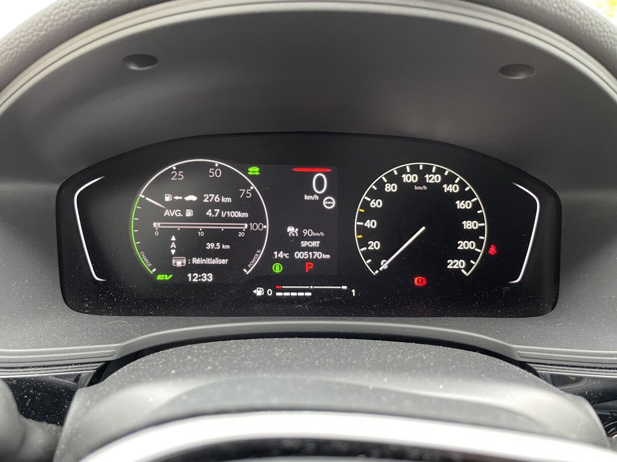 D’Systemleeschtung läit bei 184 Päerd an 315 Nm Dréimoment, wat duergeet, fir dem Civic Been ze maachen. 143 Päerd leescht dobäi de Verbrenner, 135 kW komme vum Elektromotor. Als einfachen Hybrid spuere mer eis d’Kapitel iwwer elektresch Reechwäit, Chargeuren a Batteriecapacitéiten. Nëmmen esouvill: um Enn vum Test bei verstännegen 4,7 Liter op 100 km.