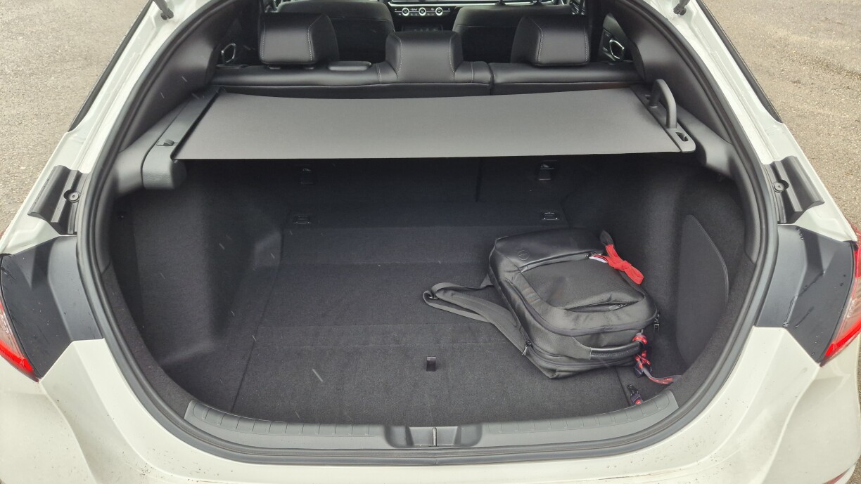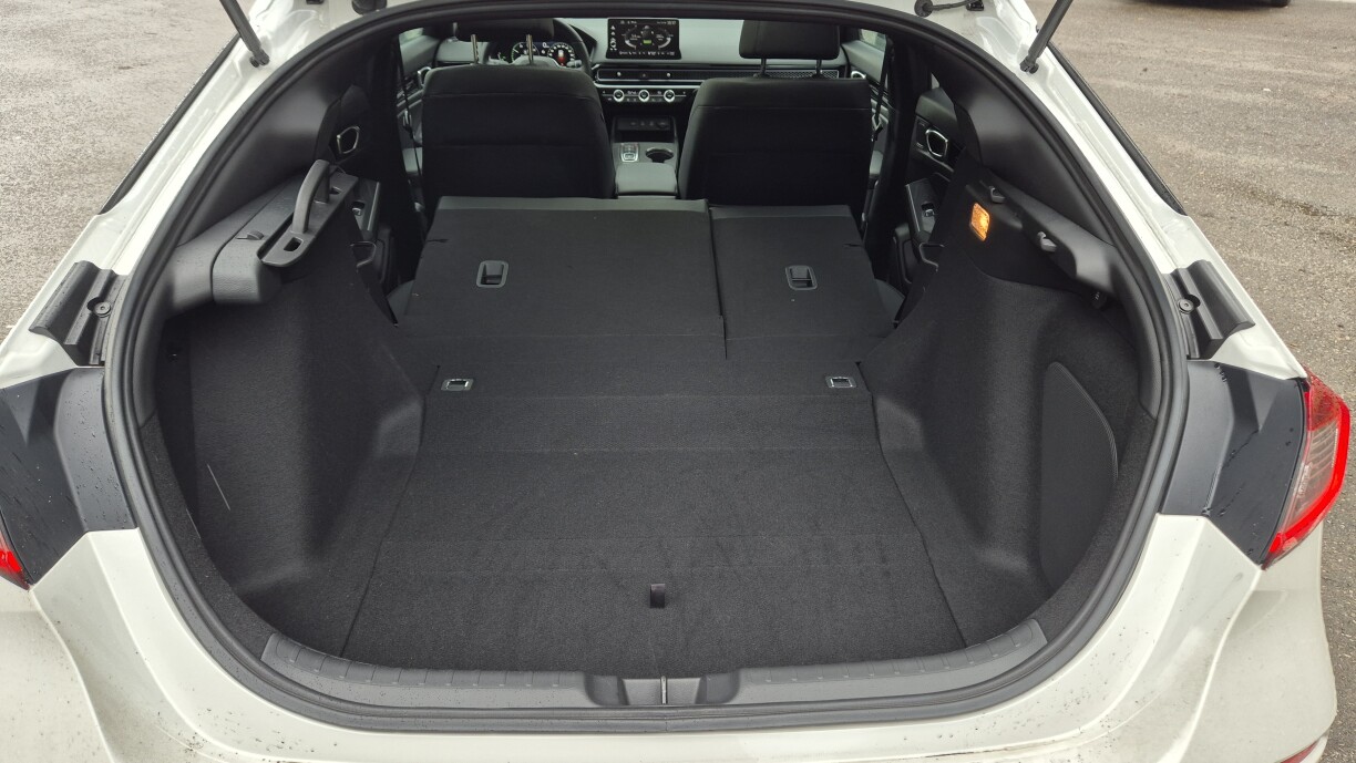 D’Mall huet eng duerchschnëttlech Gréisst vu 410 Liter, bis zu ronn 1.200 Liter, wann een déi hënnescht Sëtzer ëmklappt. Et muss een allerdéngs bedenken, dass een duerch d’Hatchback-Coupé-Form vun der Mall an der Héicht limitéiert ass. Interessant ass och d'Gepäckraum-Ofdeckung. Dat kennt ee jo meeschtens, dass een dat vun den hënneschte Sëtzer a seng Richtung zéie kann, fir dass een duerch d'Fënster vun der Mall net gesäit, wat an der Mall läit. Beim Civic geet dee Riddo allerdéngs vu lénks no riets a gëtt dann do agehaakt.