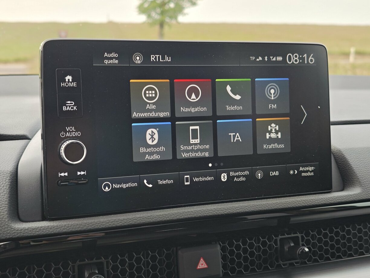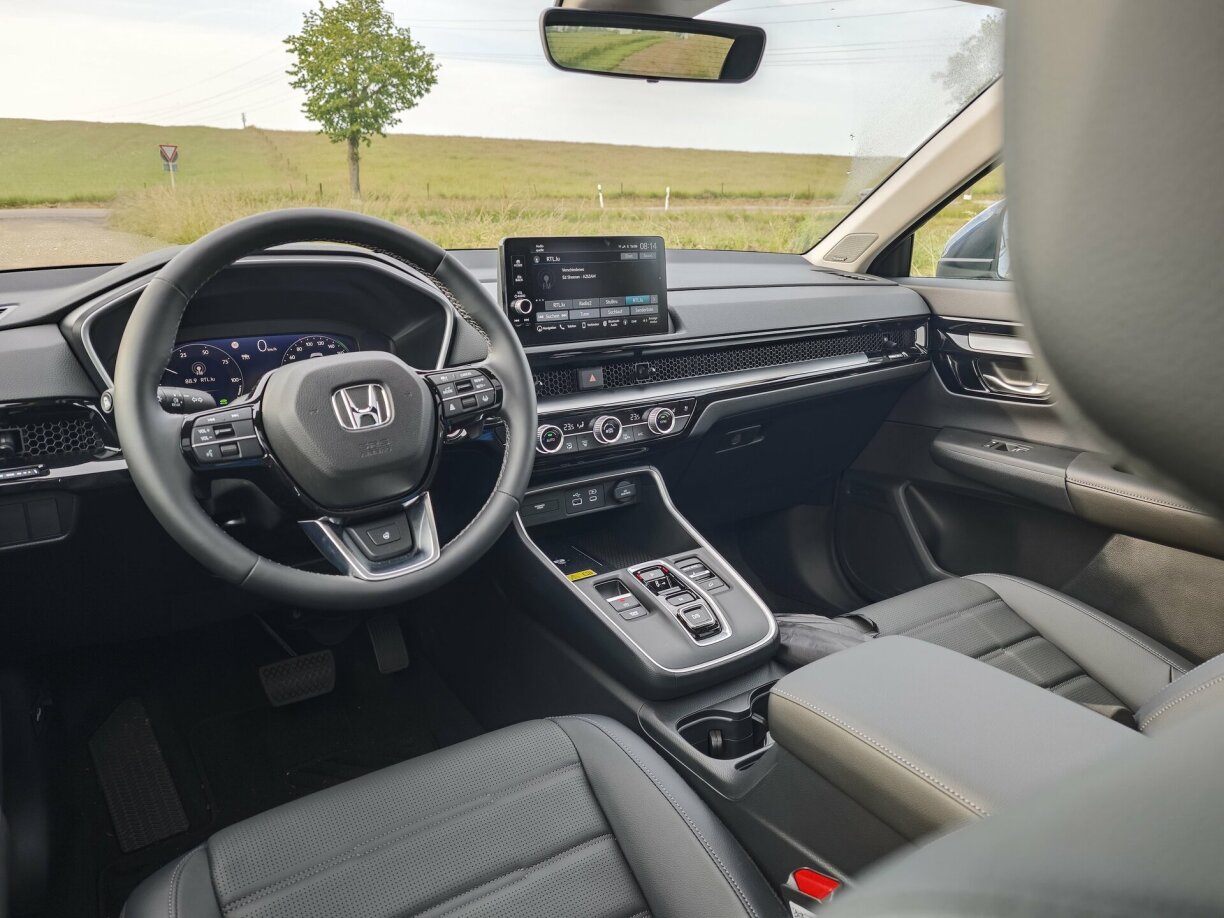 Den CR-V ass éischter e gemittleche Begleeder. Besonnesch bei niddrege Vitessen, wous de reng elektresch rulls, fiert e sech ganz agreabel. Wann s de allerdéngs op d’Landstrooss kënns, an de Verbrenner sech bäischalt, gëtt akustesch ongemittlech. Eréischt bei konstanter Autobunnsvitess gëtt et dann erëm méi roueg.