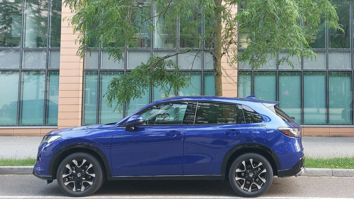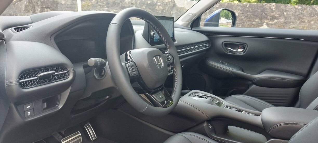 Loosse mir d’Kaz gläich aus dem Sak, nee, de Challenge 1.000 Kilometer gouf net gepackt, awer bal. Um Enn waren et 950 Kilometer, dat ass jo awer och net schlecht fir den eleganten Honda ZR-V SUV mat 57-Liter-Tank. De 4m57 laangen Honda ZR-V fält mat sengem Külergrill an de schmuele Scheinwerfer op.