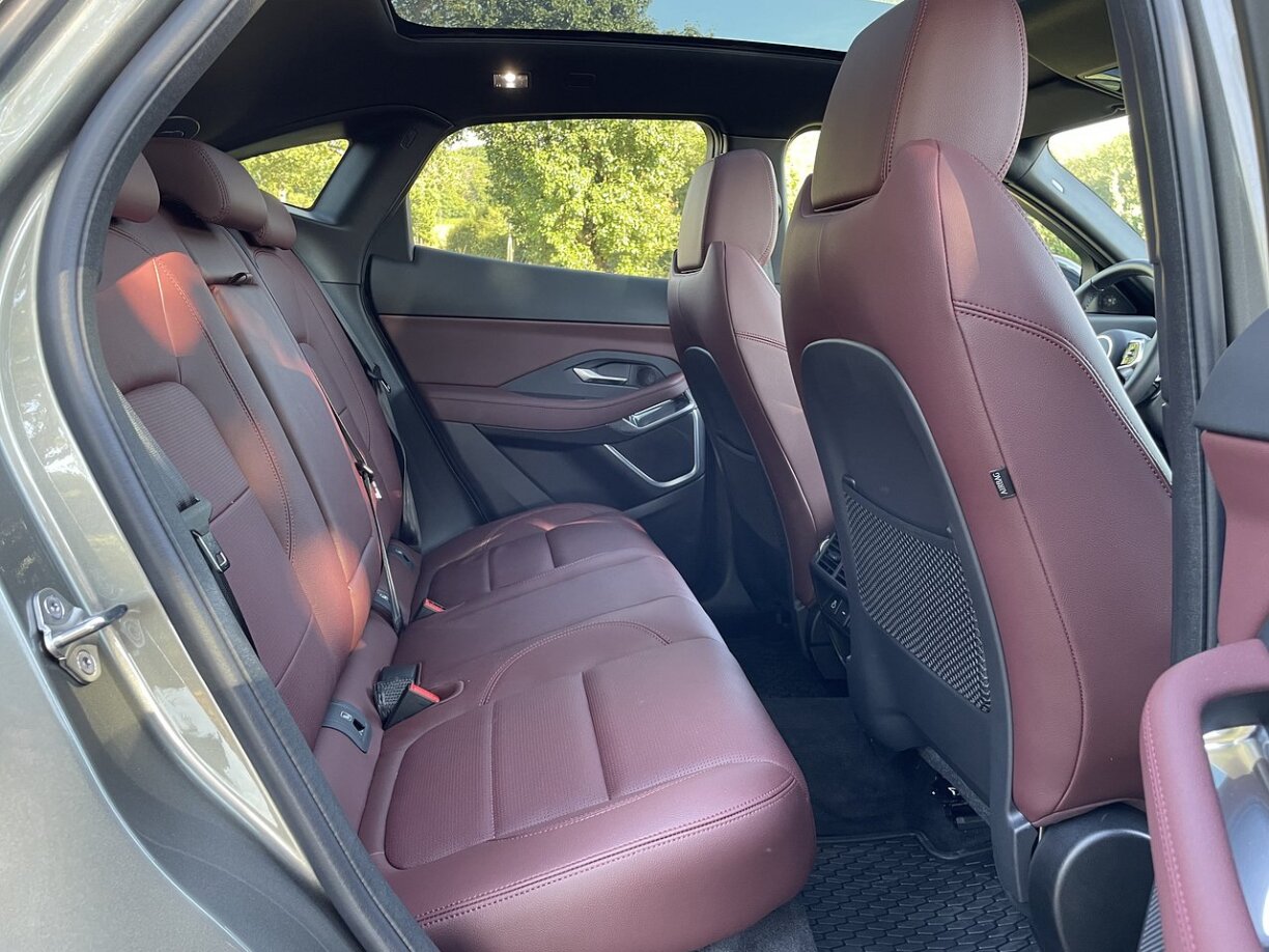 Bannendran huet sech den E-Pace vum F-Type inspiréiert, wat awer kee Feeler ass. D’Finitioune si gutt an alles peekt sech un ewéi een et vun engem Premium-Hiersteller wéi Jaguar erwaart. Allerdéngs schéngt eisen Testauto e Méindes-Modell gewiescht ze sinn: an de Kéieren huet de Plastik sech aus den Déifte vum Sëtz gemellt… an et soll jo Leit ginn, déi esou eppes wansinneg mécht.