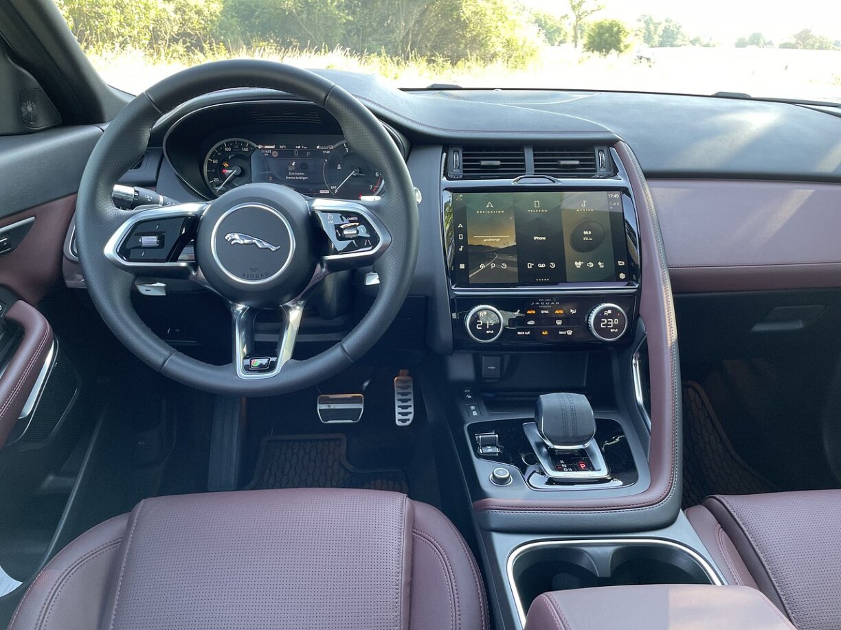 Eisen Testauto war den 309 Päerd staarken Plug-In Hybrid, bei deem Jaguar op e Mix aus 1,5 Liter Turbobensinner (200 PS) an 80 kW Elektromotor un der hënneschter Achs setzt. Esou huet de Chauffeur de Choix, ob e spuersam oder sportlech vun A op B ënnerwee ass. Reng elektresch läit d’Reechwäit bei ronn 50 Kilometer. Oder et këddelt... et léisst een d’Kaz vun der Léngt: 6,5 Sekonnen verginn aus dem Stand op Tempo 100. 540 Nm an Allrad-Undriff drécken een an de Sëtz a bréngen d’Kraaft op d’Strooss. D’Schalten hëlt iwwerdeems eng 8-Gang-Automatik vun ZF dem Chauffeur of.