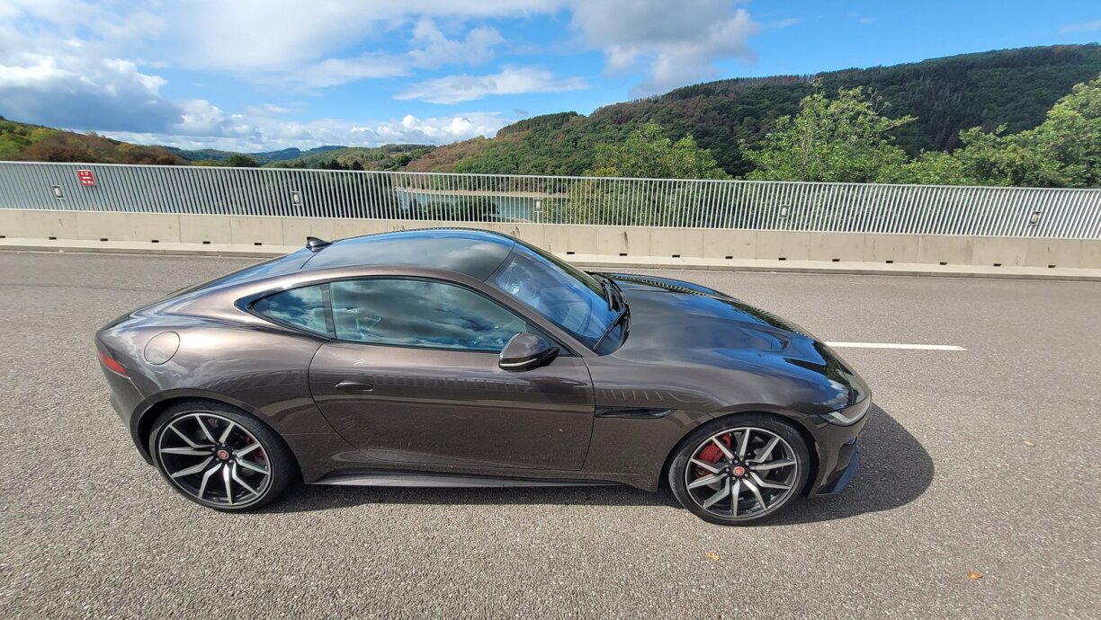 Den F-Type R ass e perfekten Begleeder am Alldag, wann een net all ze vill Stauraum brauch. E ka gemittlech cruisen, ma huet donieft souvill Leeschtung ënnert der Hauf, dass een a manner wéi 4 Sekonne vun 0 op 100 beschleunegt. Schluss ass eréischt bei Tempo 300! Wann een den ugestriefte WLTP-Verbrauch vun 10,7 Liter op 100km erreeche wëll, da sollt een net all ze dacks mat sou héije Vitessen ënnerwee sinn. Mäi Verbrauch no puer honnert Kilometer loung bei 13,5, wat awer fir e 575 PS V8 nach ëmmer vertriedbar ass.