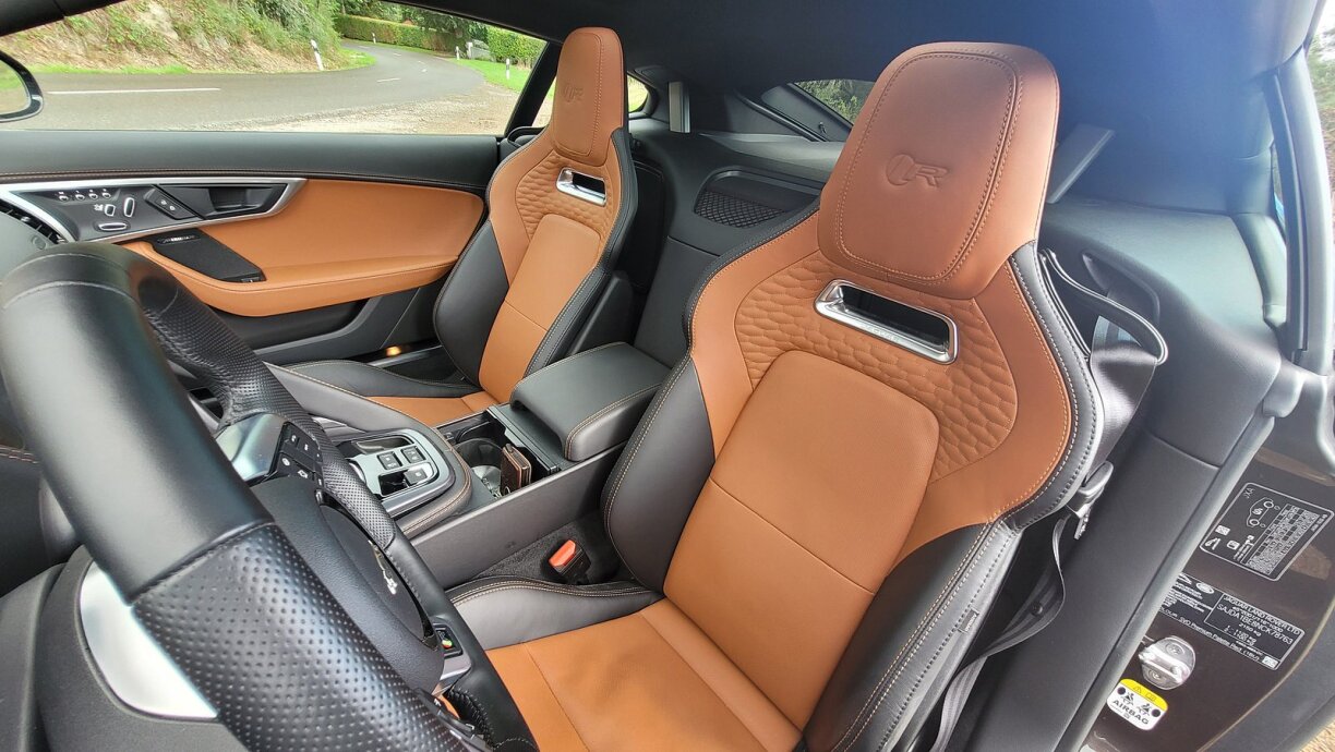Rieds ass vum Jaguar F-Type, an als extra Bonus nach den Zousazbuchstaw “R”, deen an dësem Fall fir d’Topmotoriséierung steet. Anescht wéi soss fänken ech dann och direkt mam Motor un, well dee mécht dach e groussen Ënnerscheed. Et handelt sech heibäi ëm e 5 Liter V8, dee via Kompressor zwangsbeotemt gëtt an dobäi net manner wéi 575 PS a 700NM Dréimoment entwéckelt, ma net nëmmen dat! Dobäi kënnt och nach de wonnerschéine V8-Sound, dee reegelrecht süchteg ka maachen. Beim Virgänger huet den Auspuff nach méi gebraddelt a sech och alt emol verschléckt. Dat ass elo mam OPF e gutt Stéck méi “brav” ginn, ma ëmmer nach schéin nozelauschteren. Virun allem d’Noperen dierfte sech doriwwer freeën.