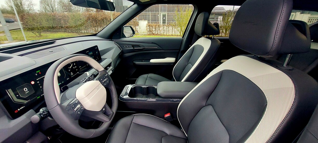 Den Tableau de Bord ass iwwersiichtlech, net alles leeft iwwer di zwee 12 Zoll grouss Ecranen. Vill Funktioune fir Info- an Entertainment kënne mat Knäppercher gereegelt ginn, gutt esou. An alles ass gutt verschafft a praxisgerecht.