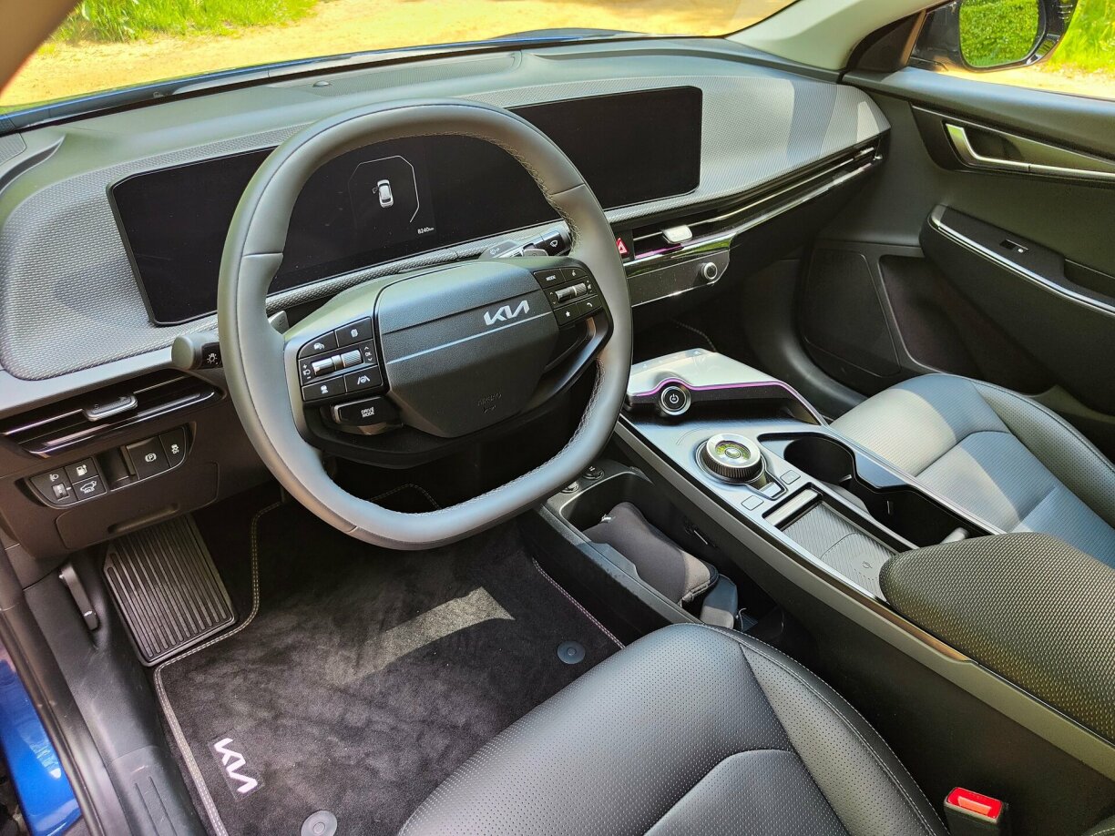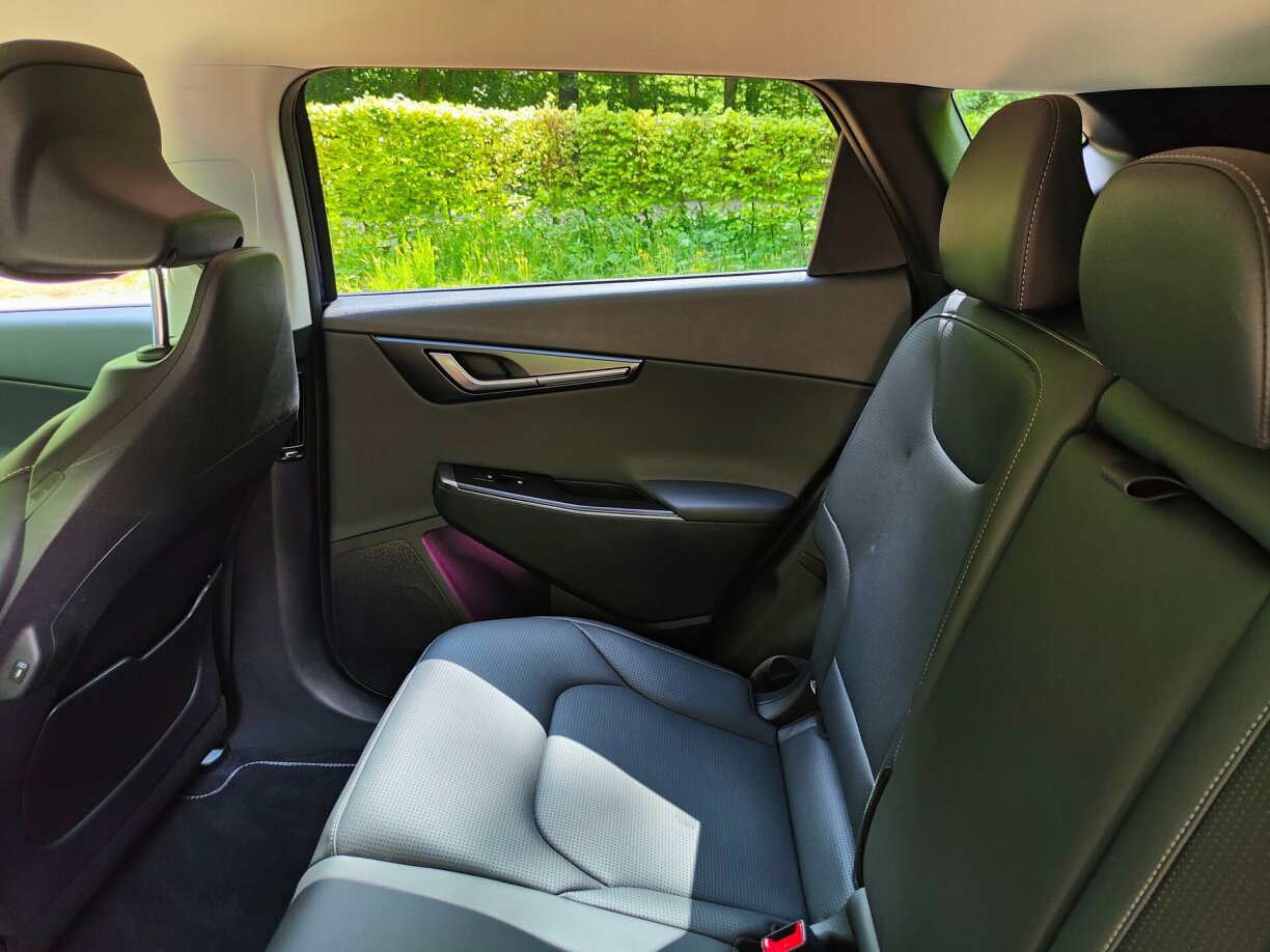 Plaz ass am EV6 nach ëmmer méi wéi genuch; vill Beefräiheet an eng komfortabel Sëtzpositioun ass séier fonnt. Just fir de Kapp kann et hannen e bësse knapp ginn. Fir mäi Goût war de Chaufferssëtz och liicht ze héich positionéiert. De Volume vun der Mall bleift bei 520 Liter.