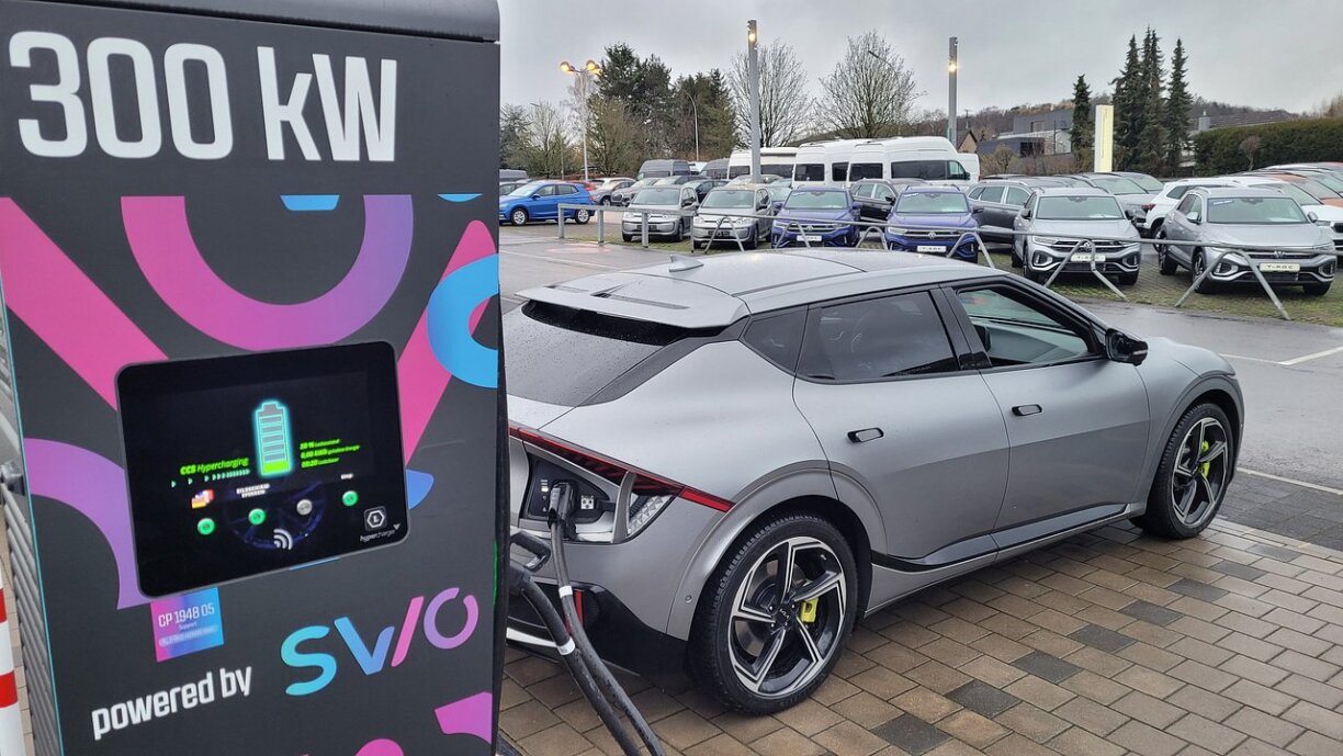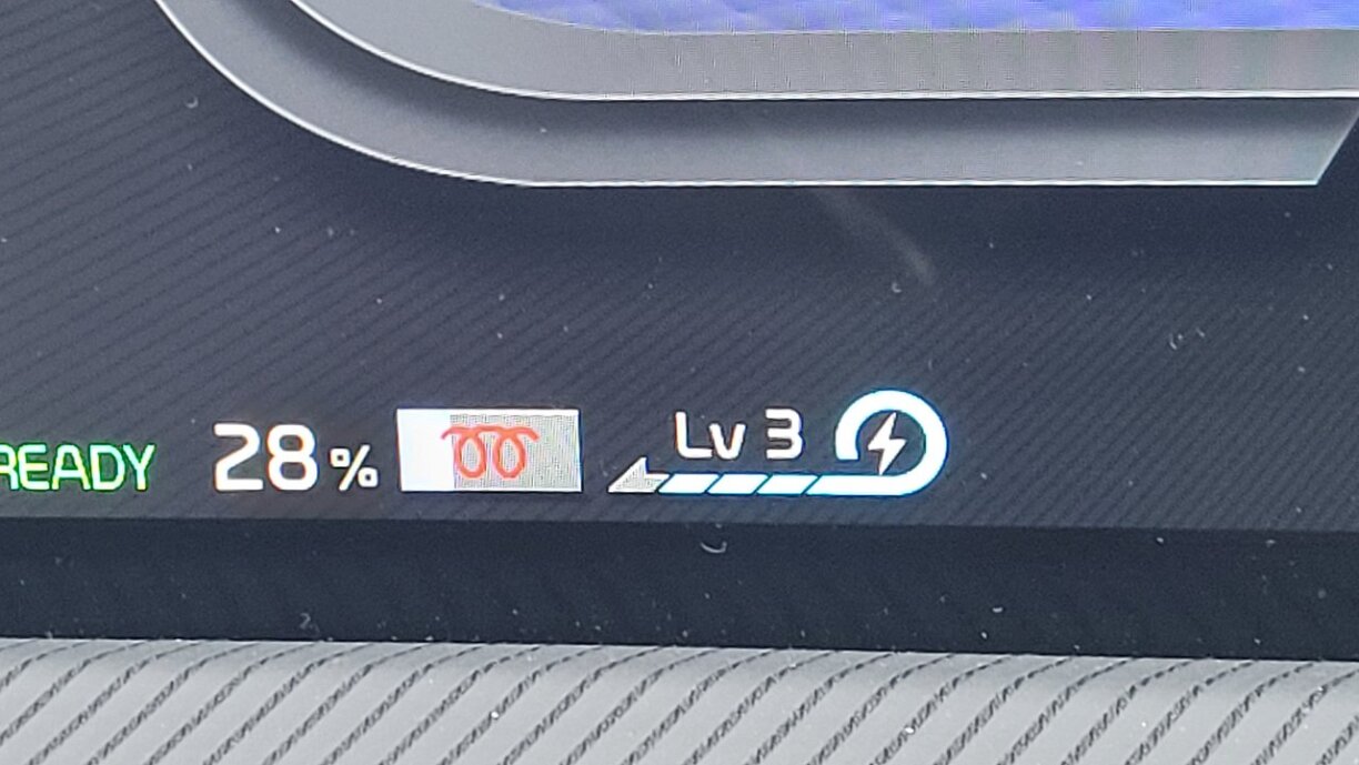 Ech hunn op enger 300kW-Statioun gelueden a koum do op e maximum vun 200kW. Fir 66kWh ze lueden an op 100% ze kommen, huet 54min gedauert. Mäin Duerchschnëttsverbrauch louch bei 22,8 kW/h op 100km, wat ganz no un de versprachenen 21,9 läit.