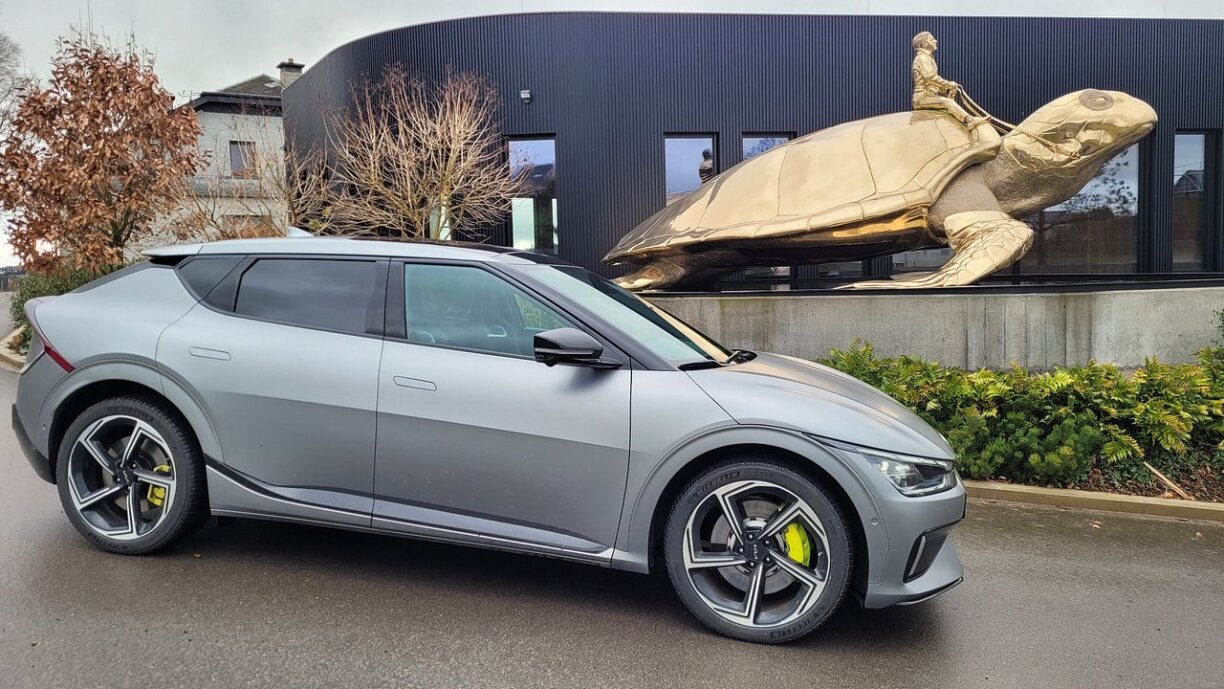 Mir schwätzen haut iwwert de Kia EV6, deen 2022 als Europäeschen Auto vum Joer ausgezeechent gouf, a sech géint Konkurrente wéi Renault Mégane E-Tech, Skoda Enyaq iV, Ford Mustang Mach-E, Peugeot 308, Hyundai Ioniq 5 a Cupra Born duerchgesat huet. Et war den éischte Modell vu Kia, deen dëse Präis jee gewonnen huet. Fir eisen Test, huet KIA dann och den Top-Modell op Lëtzebuerg bruecht, deen nach de Kierzel «GT» hannert dem Numm stoen huet.