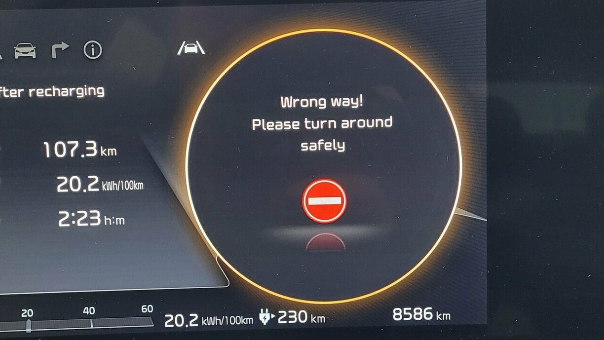 Am Display krut ech alt minuttelaang ugewisen, dass ech op der falscher Streck ënnerwee wier, sou wéi wann ech e Geeschterfuerer wier... wat awer net de Fall war. An ech krut et och net ewechgedréckt.