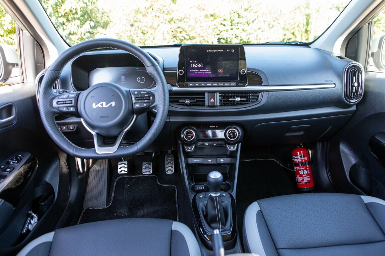 Fir manner Begeeschterung huet d’Ergonomie bei mir gesuergt: d’Steierrad ass just an der Héicht verstellbar an ech hat Problemer meng Sëtzpositioun ze fannen. D’Sëtzer sinn éischter fir kuerz Strecken ausgeluecht a bidde wéineg Säitenhalt, a wann de Chauffer grouss gewuess ass, gëtt aus dem Picanto och alt mol en Zweesëtzer.