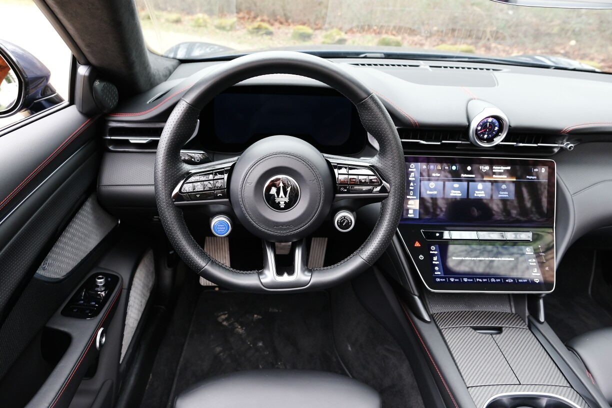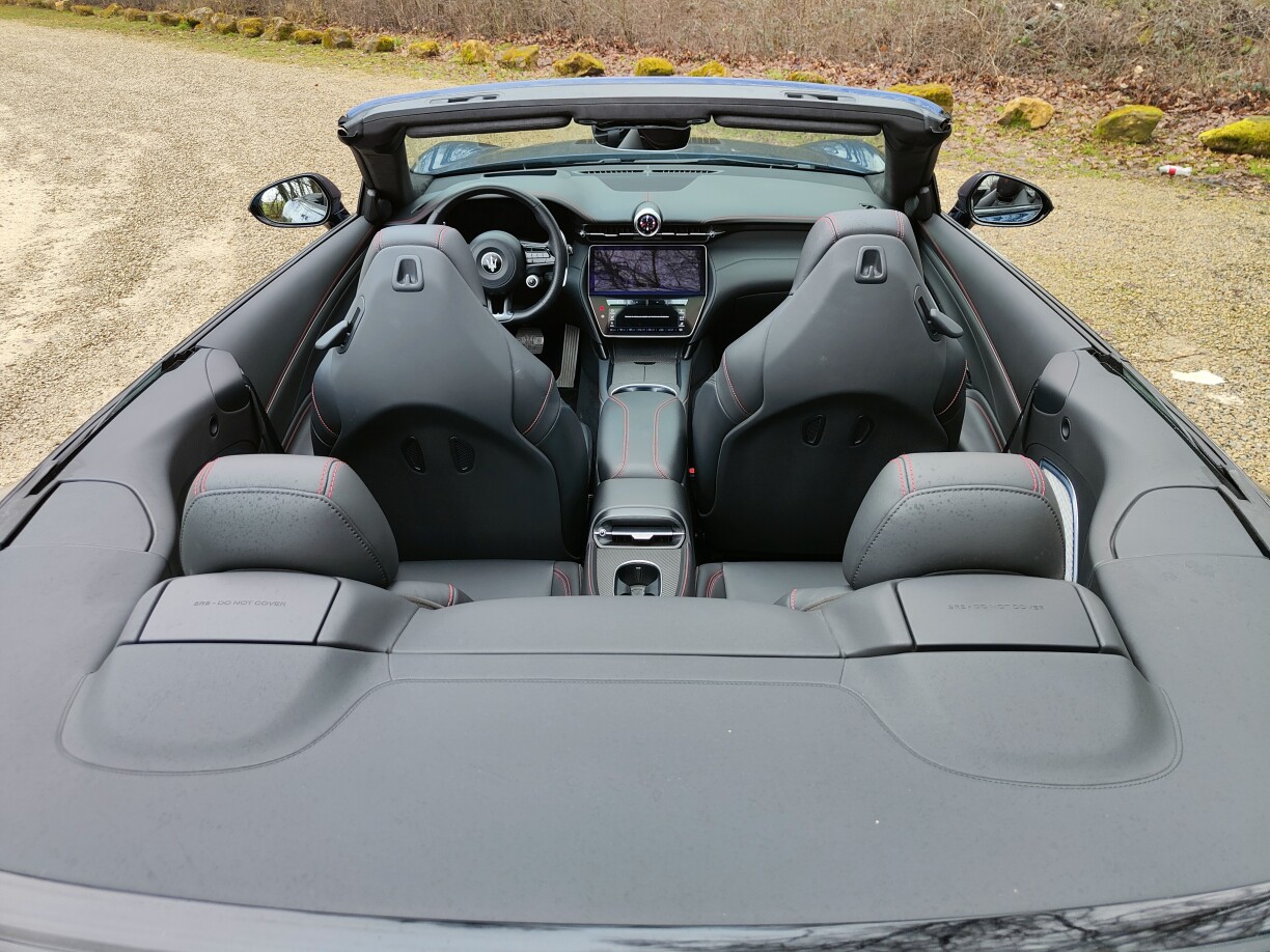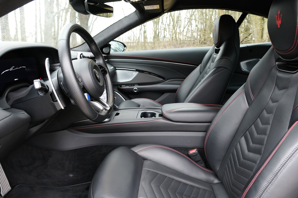 Maserati setzt virun allem op eppes, dat ass Individualismus. Warscheinlech verbréngt ee méi Zäit beim Wiele vun de Faarwen a Matièren, wéi bei de Motorisatiounen. Den Testauto war bannen am schlichte schwaarze Lieder mat roude Bitzereien ausgekleet, mee esou mëllt Lieder bréngen net vill aner Marke fäerdeg. Leider ass den Zäitalter vun de Bildschiermer och zu Modena ugeklongen an de GranCabrio ze bedéngen ass net onbedéngt intuitiv. Entweder sinn ze vill Funktiounen op klengem Raum, oder et ass verstoppt, sief et an Ënnermenuen oder wéi d’Knäppercher fir de Radio um Steier.
