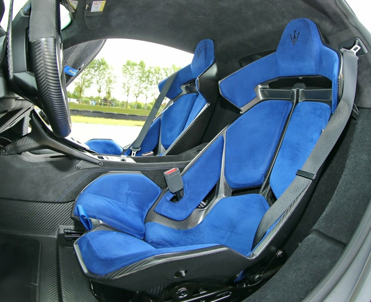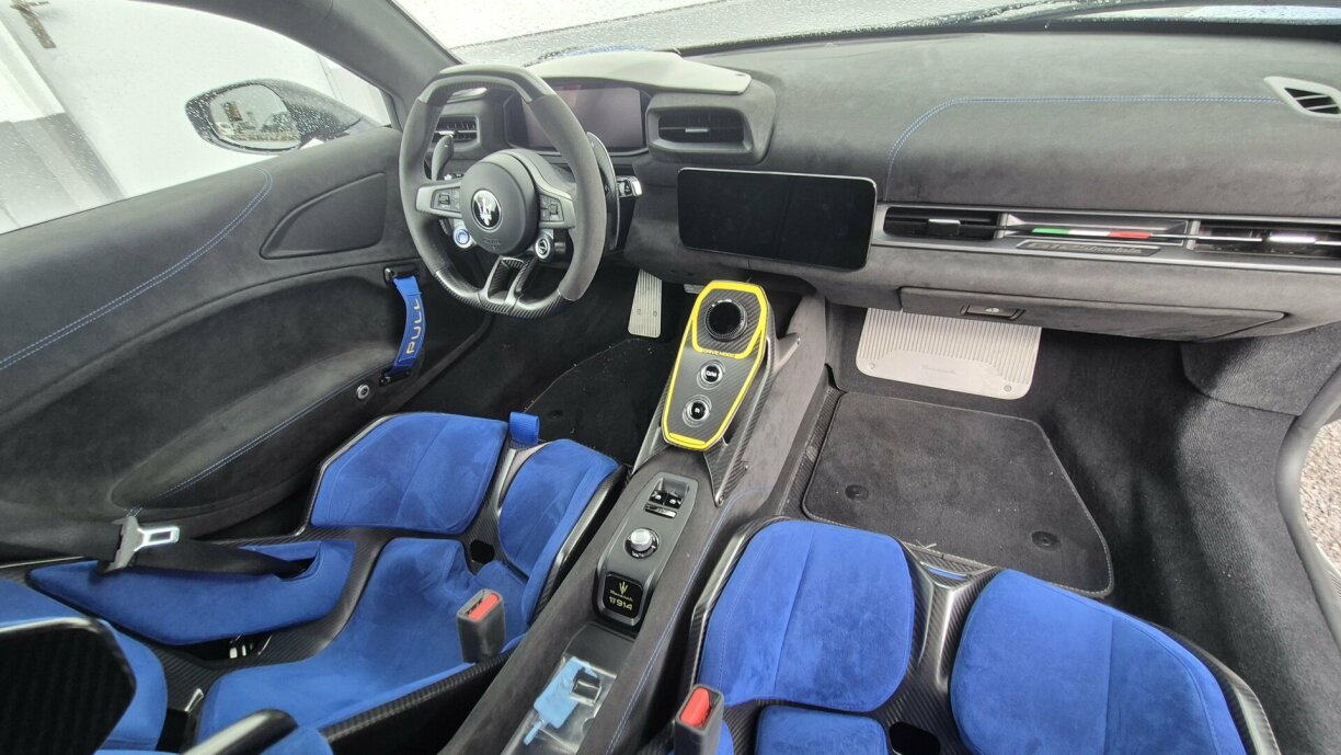 Am Banneraum begréissen ee futuristesch Sëtzschuelen aus Carbon, mat just enger Partie Pads, do wou een a Kontakt mam Sëtz kënnt. Et gesäit onbequeem aus, ass et awer tatsächlech net. Et fillt ee sech wéi an engem richtege Courseauto.