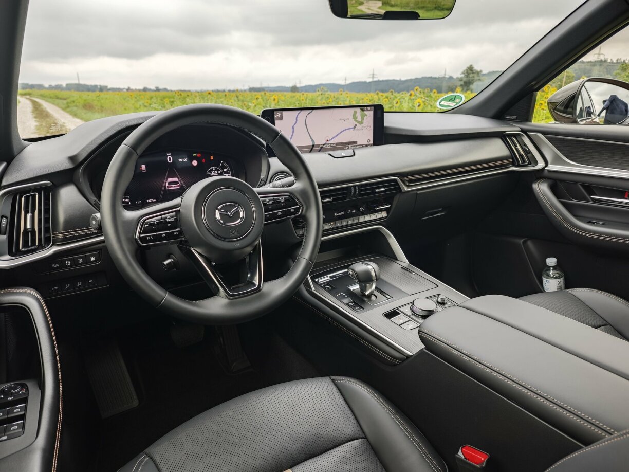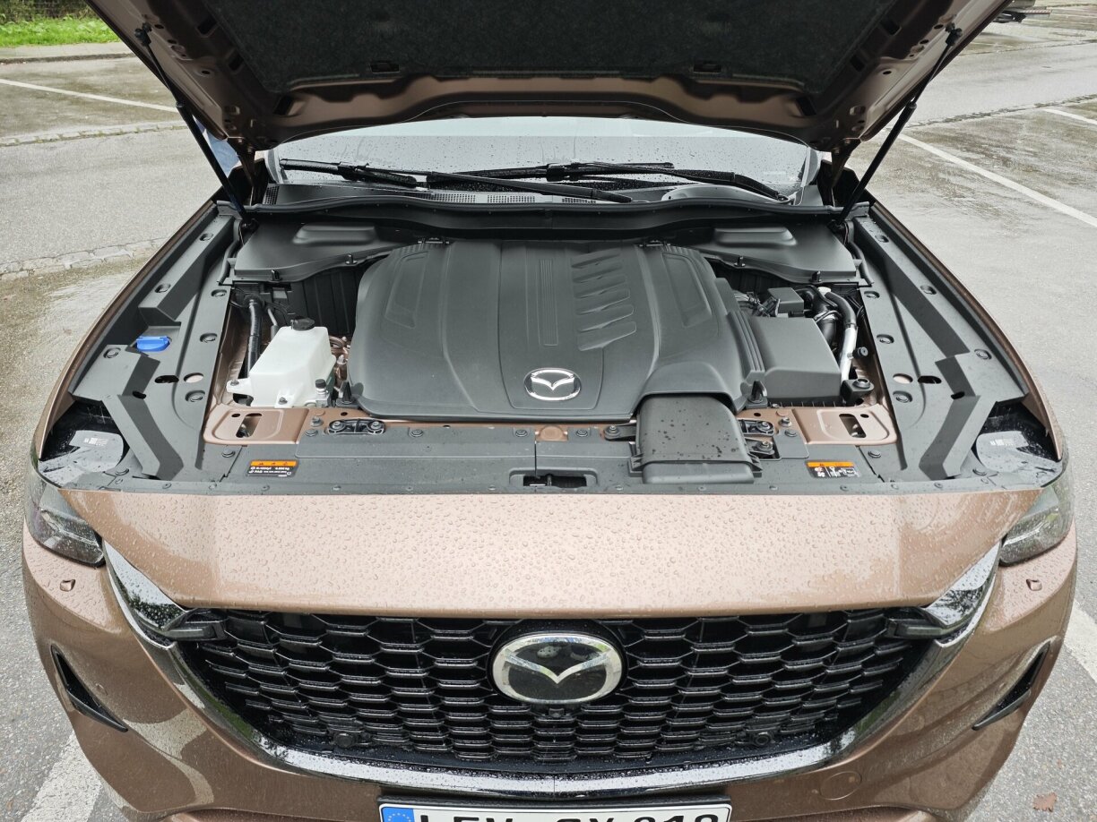 Zwee Motoren huet Mazda am Programm. Zum engen e Plug-In Hybrid, dee sech aus engem 2,5 Liter Véierzylinder Bensinner mat 192 PS (141 kW) an engem Elektromotor mat 175 PS (129 kW) zesummesetzt. D’Systemleeschtung läit bei 327 PS (241 kW), déi reng elektresch Reechwäit am Optimalfall bei 60 km – dat ass ok, awer net iwwerwältegend. Zudeem muss de Bensinner héich dréien, fir seng Leeschtung ofzeruffen a wierkt schwaach, wann d’Batterie bis eidel gesuckelt ass.