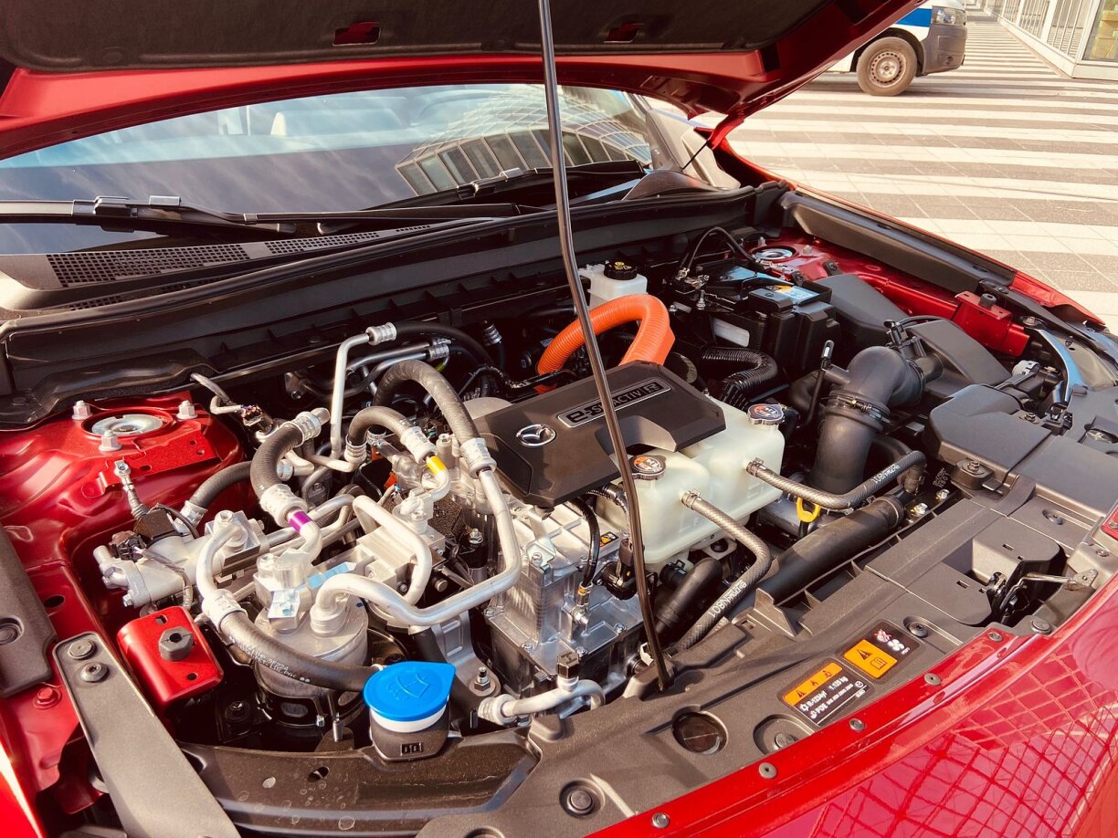 Ech probéieren d’Technik einfach ze erklären. Mazda huet ee klengen Akku vu 17,8 kWh agebaut. Mat deem kéims de grad emol 85 Kilometer. Si hunn awer och ee Bensinnstank vu 50 Liter mat agebaut. Mat deem spréngt ee Wankelmotor un, dee bedreift e Generator, deen dann d’Batterie luet.