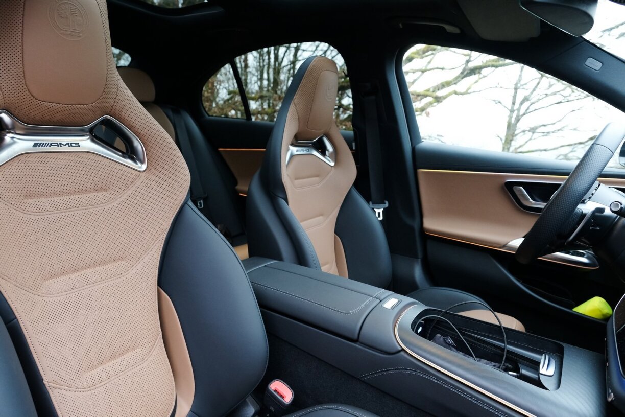 Bannendran erkennt een den AMG haaptsächlech un de Sëtzer, an eisem Fall déi iwwer 6.000 Euro deier High End Performance Schuelesëtzer.