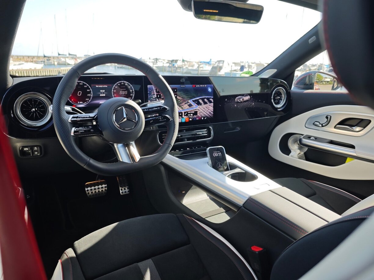 An do huet eis e volle Programm erwaart: nieft den éischte Kilometer hannert dem Steier vum vollelektreschen CLA war et och den éischte Kontakt mam neie Betriibssystem MB.OS, deen och an den nächste Modeller mam Stär den Takt ugi wäert. An dann dierfte mer och en éischte Bléck op den CLA Shooting Brake geheien…