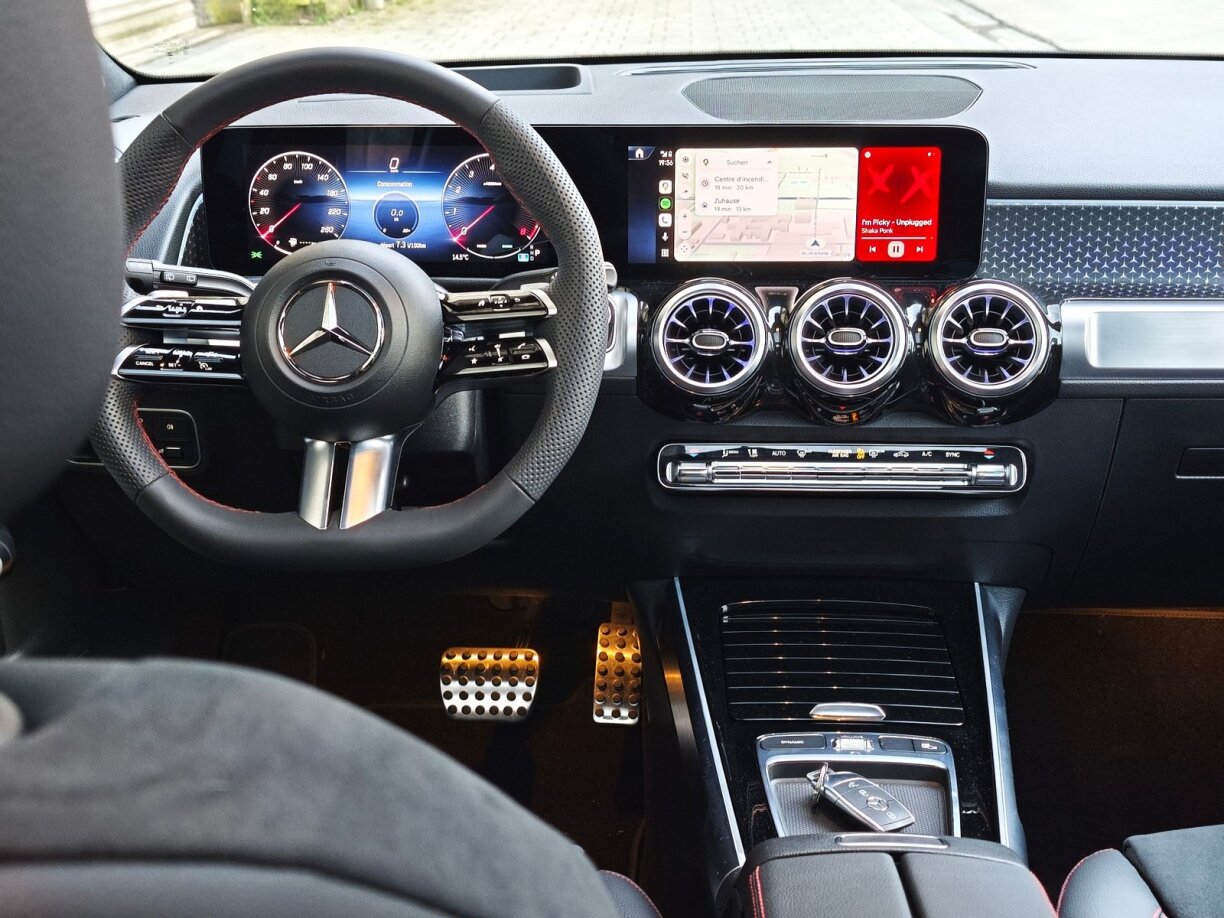 Bei engem Facelift denkt een an éischter Linn u kosmetesch Korrekturen. An déi gëtt et och beim GLB, woubäi déi dezent ausfalen. De Modell behält säi robusten offroad Charakter a krut eng nei Front an nei Luuchte spendéiert. Bannendra gouf et en Update – oder Downgrade: den Touchpad vum Infotainment ass elo Geschicht, genee esou wéi verschidde Knäppercher fir d‘Haaptfunktiounen am Infotainment auszewielen. Et muss een also méi um Ecran spillen, wat iwwert dem fueren oflenkt. Et muss ee wëssen, den Ecran ass relativ kleng a wäit ewech. A wéi wann dat net genuch wier, ass och d‘Steierrad iwwerschafft a mat Touch-Knäppercher iwwerluede ginn. Ech hu mech am Test méi wéi eemol gewonnert wisou den Infotainment plëtzlech en Eegeliewen entwéckelt huet.