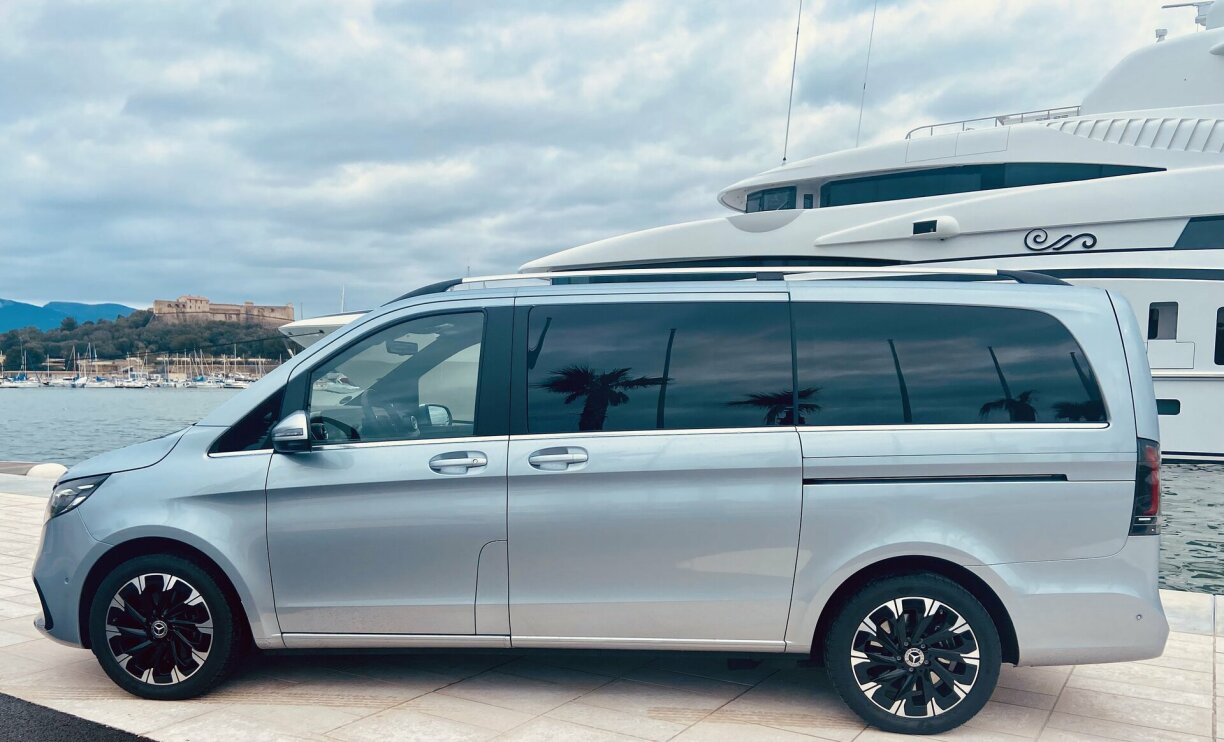 Nieft dem Diesel bass du awer och elektresch gefuer. Nämlech den EQV 300. Dat ass en éischten komplett elektreschen Passagéier-Van dee Mercedes op de Marché bruecht huet.