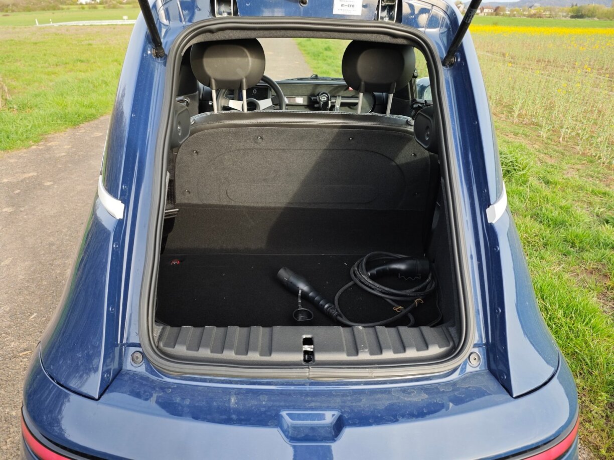Dobäi eraus koum e sympathesche Mini mat Kultpotenzial a genuch Plaz fir zwee Erwuessener, déi sech op enger schmueler Sëtzbänk mat wéineg Säitenhalt och alt mol géigesäiteg stäipen. Iwwerraschend grouss ass dann d’Mall, wou e Cageot Gedrénks an eng Akafstut erapassen.