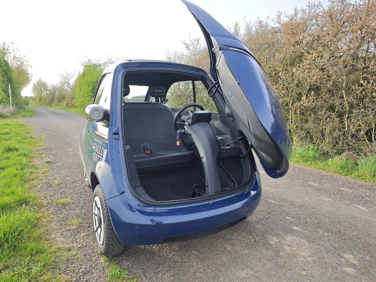 Richteg, fir de Microlino ass den Autosführerschäin néideg: am Boost-Modus si bis zu 90 km/h mat deem klengen Zwerg méiglech. An ech kann der soen, se fille sech méi séier un! Op d’Autobunn hunn ech mech net getraut, ma op der Landstrooss kanns de gutt matschwammen, ouni ze hënneren. Permanent d’Pedal bis un de Blech ze drécken geet awer op Käschte vun der Reechwäit.