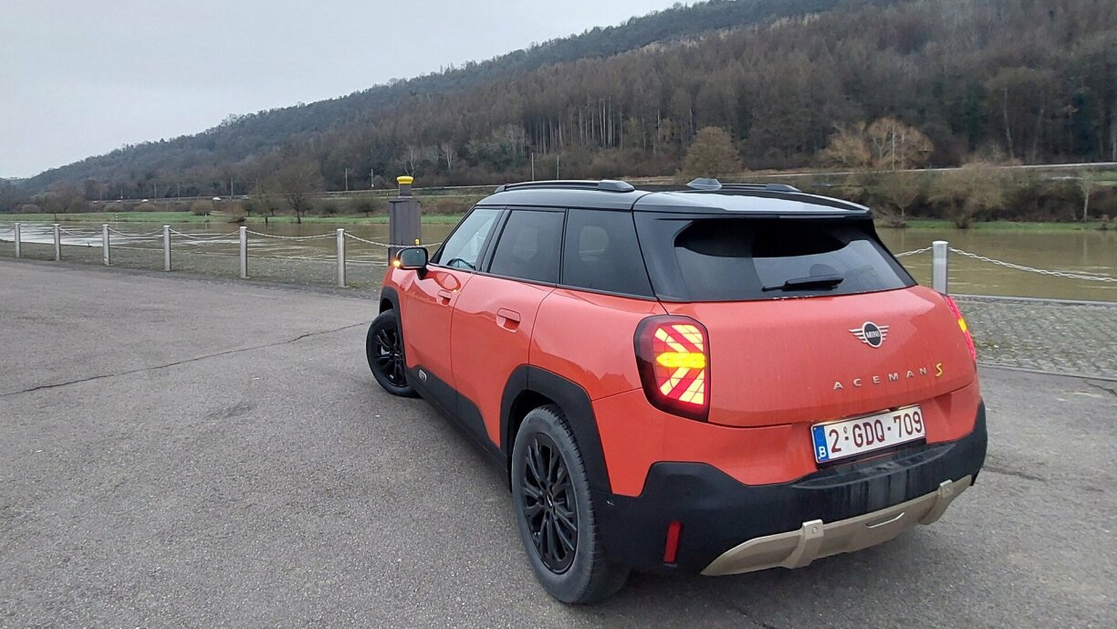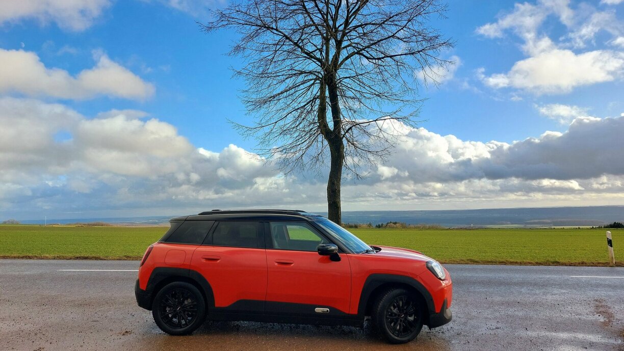 E weess ze gefalen. Kaum vum Haff gefuer gëtt ee scho beim éischte Fotostopp op dee klenge Britt ugeschwat, deen d’E-Auto-Fraktioun am ënneschte Segment beräichert. E bëssche méi grouss wéi de Cooper, awer manner laang an héich wéi de Countryman, an esou Plaz fir den Aceman an der Mëtt. Passt.