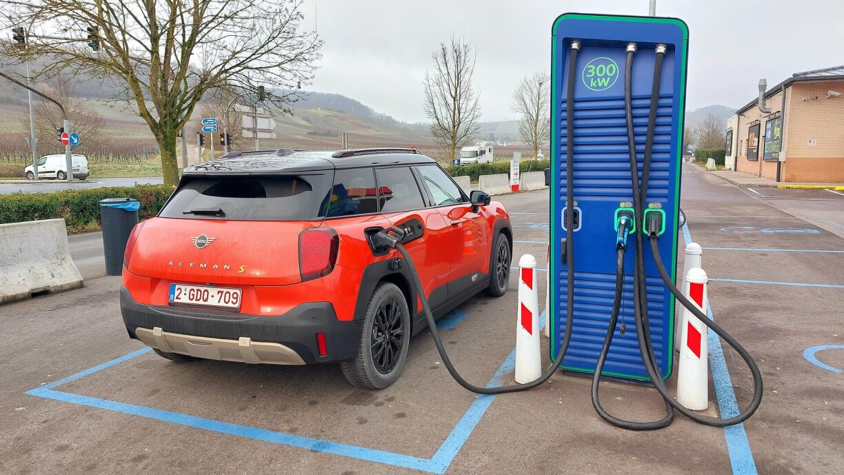 Do ass keng “bonne note” dran. Mat grad emol 95kw maximal wëll de Mini geluede ginn. Mir hunn et um Schnelllader getest, an och wa mir ganz eleng um Stécker houngen koum net méi wéi 59kw eraus. Also, jo Gedold ass gefrot. Mam Verbrauch vun ëm di 18 kw kann e liewen. Rekuperatiounspaddelen um Volant ginn et keng.