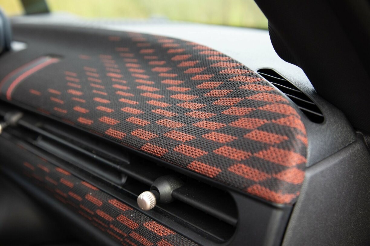 An do huet sech munches gedoen! Aus dem verspillte Fliger-Cockpit ass e minimalistesch-moderne Living ginn. D’Kanner sinn aus dem Haus an d’Bud ass opgeraumt, kéint een et resuméieren. Déi Iwwerleeung kéint och déi eng oder aner Decisioun erklären. D’Armaturebriet ass nei a mat enger Zort Stoff iwwerspaant, deen och un den Dierverkleedungen zum Asaz kënnt. Dat gesäit super aus, esoulaang keng pecheg Kannerhänn Spueren hannerloossen an een et botze muss.