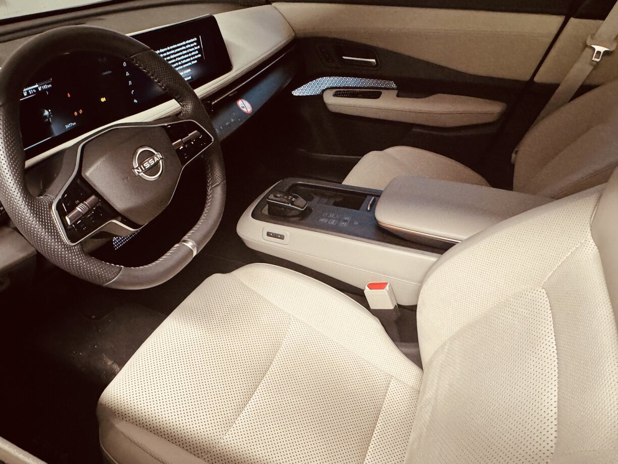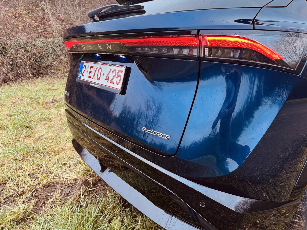 Ech hat, wéi schonns gesot, déi sougenannten, e-4ORCE Versioun. An där ass ee 87kWh Akku verschafft. De Verbrauch gëtt Nissan offiziell, mat 19,5 bis 19,9 kW un. Do muss dann awer alles passen. Wann ech mam Eco Modus ënnerwee war, den E-Padle benotzt hunn an och op de B Modus zeréck gegraff hunn, do dernieft och ganz dezent mam Auto ënnerwee war, da sinn ech un 20 kW eru komm. Realistesch, ass een awer net ëmmer esou ënnerwee. An deen Ament klemmt de Verbrauch relativ séier, op iwwer 24 kW erop.
