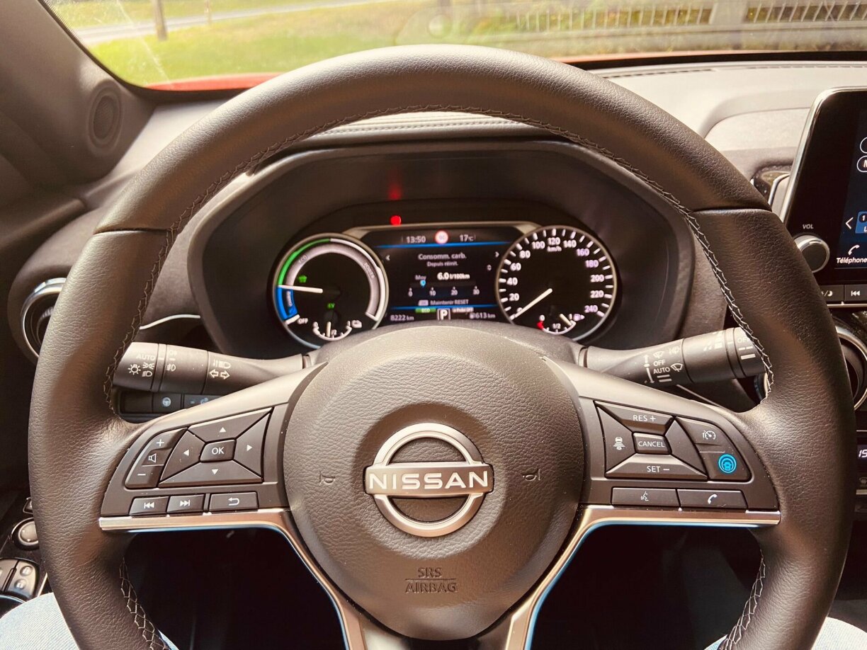 Du kanns tëscht 3 Modusse wielen: Den “Eco”, den “Normal” a “Sport”. Den Auto fiert sech am normal Modus awer ganz kloer, am beschten. Wann s de an der Stad ënnerwee bass, da rulls de praktesch zu 100 Prozent mat Elektresch, well de Verbrenner eréischt bei ronn 50 an der Stonn uspréngt. Den Nissan Juke Hybrid ass kee Plug-In Hybrid. Dat heescht, den Akku gëtt just iwwert de Verbrenner, respektiv duerch d’Bremse gelueden. Un der Steckdous ass et net méiglech d’Batterie opzelueden.
