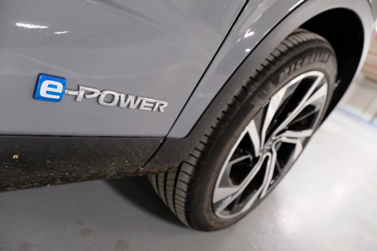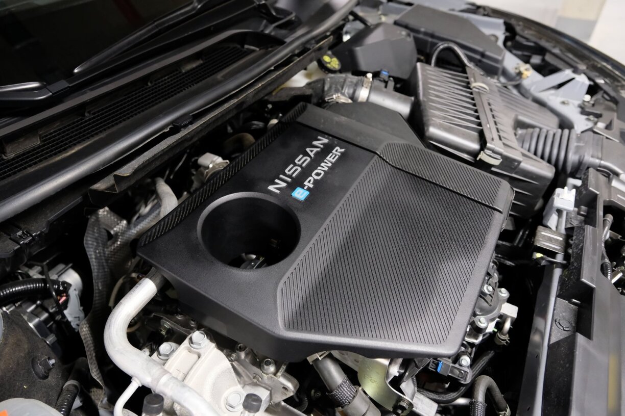 Jo, an dee Wee huet Nissan elo viru kuerzem och mam neien X-Trail ageschloen. Den Hybrid-System fonctionéiert net esou wéi mer et kennen, heescht de Verbrenner dreift d’Rieder un a kritt Hëllef vum Elektromotor, respektiv, den Elektromotor dee meeschtens an der Klack vun der Boîte sëtzt, dreift den Auto un. Beim e-Power ass et wéi deemools beim éischten Opel Ampera. Eenzegen Undriff ass den E-Motor an och nëmmen hien ass mat de Rieder verbonnen. 190 PS leescht d’E-Maschinn a gläicht där aus dem Leaf an dem e-NV200. D’Batterie ass awer relativ kleng a muss dofir reegelméisseg geluede ginn. Dat iwwerhëlt dann een 3-Zylinder Turbobensinner mat 158 PS, deen sech au Besoin bäischalt a méi oder manner Leeschtung ofgëtt.