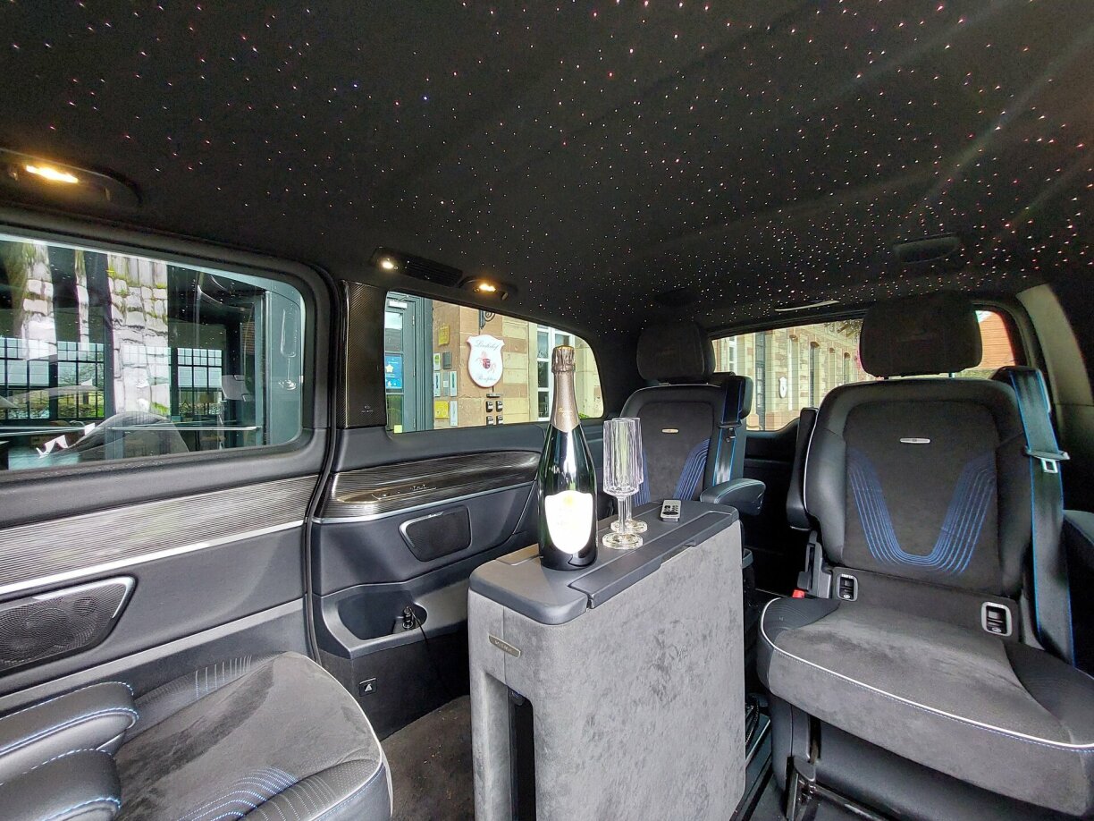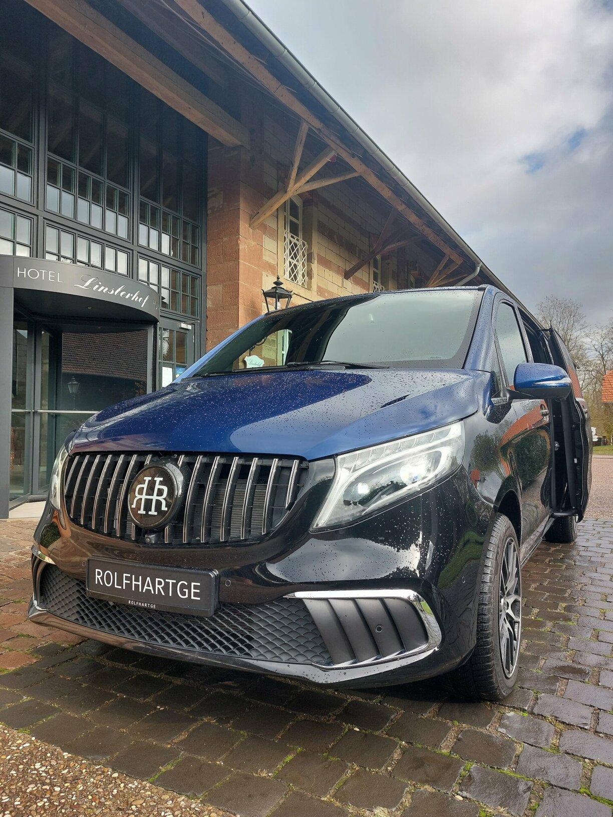 An da fält de Bléck op d’ Vis à Vis Editioun. Vu baussen eng V-Klass an der extra laanger Versioun.