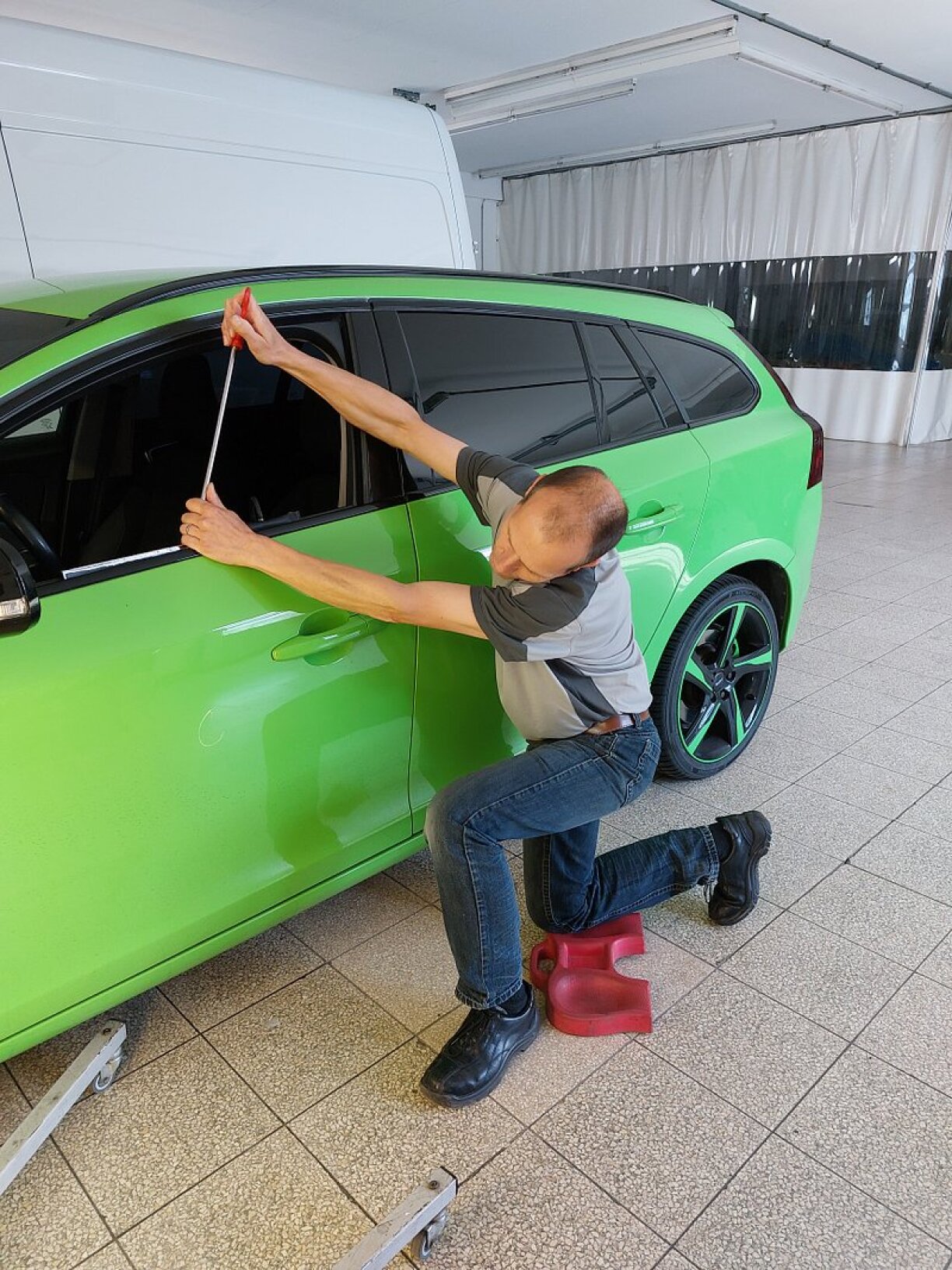 Beim Blech gibt es wirklich sehr grosse Unterschiede. Wobei man auch bei den Premium Marken, die vorher immer das beste Blech in Anführungszeichen hatten, auch mittlerweile gemerkt haben dass es schwieriger wird diese Fahrzeuge auszubeulen. Die Bleche werden immer dünner, es werden sehr viele hochfeste Bleche verbaut. Auch Aluminium vereinfacht die Sache nicht, und bei Kunststoffteilen bin ich ganz raus. Die kann man mit dieser Technik nicht bearbeiten.