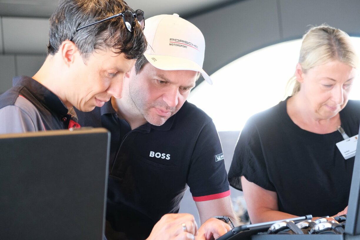 Ech hat dann och vun der Geleeënheet profitéiert, dass den éisträichesche Porsche Wierksfuerer Richard Lietz op der Ascari-Rennstreck mat dobäi war an hunn e kuerzerhand gefrot, ob ech mech fir e puer Tier dierft nieft hien an den Auto setzen. Hie war do ganz onkomplizéiert an huet direkt zougesot.