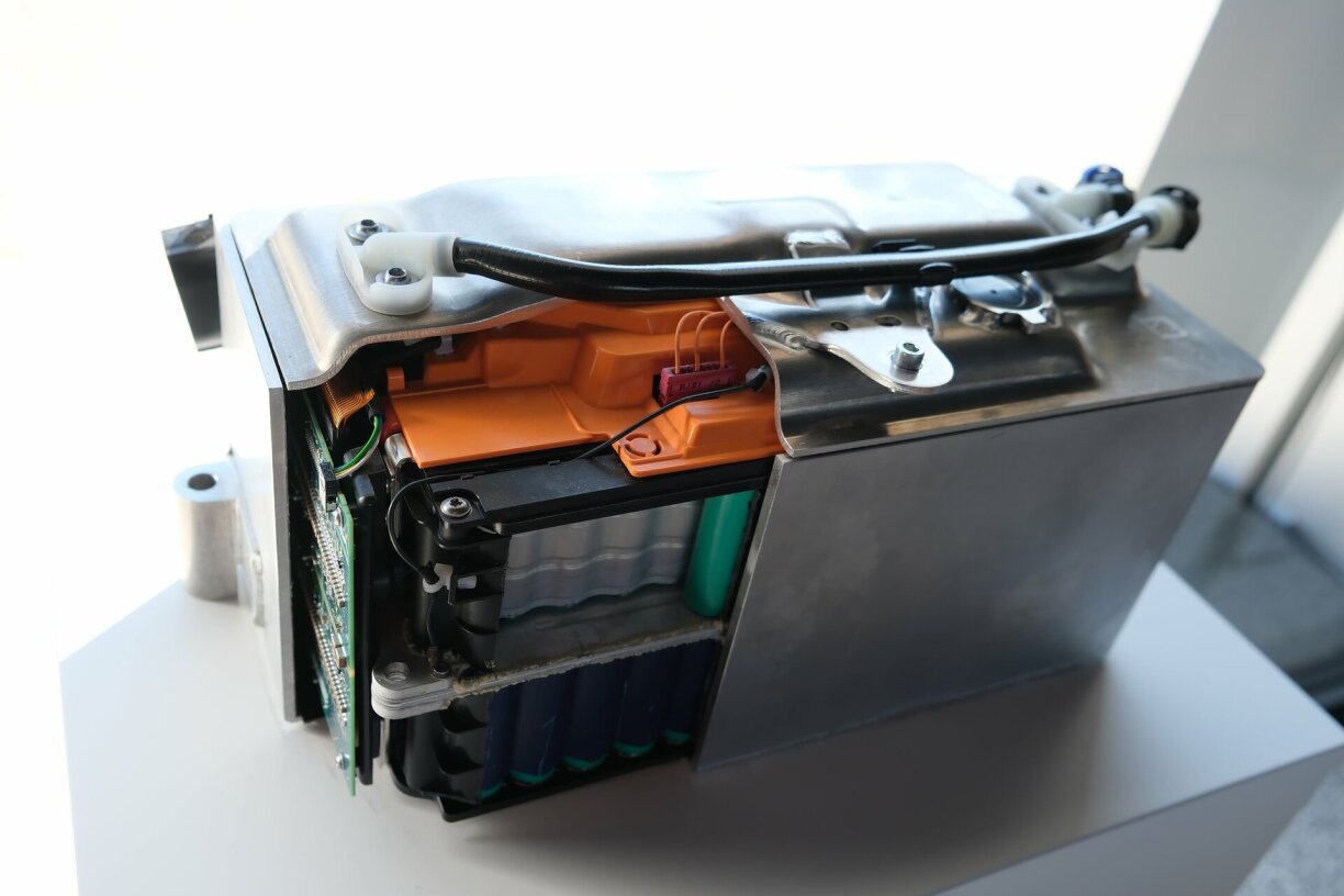 D’Héichvolt-Batterie ass vir ënnerbruecht, wou soss déi normal 12V-Batterie war a weit mat hire 27kg quasi d’selwecht vill, wéi eng normal 12V-Starterbatterie. Si späichert bis zu 1,9kWh a funktionéiert mat enger Spannung vu 400V.