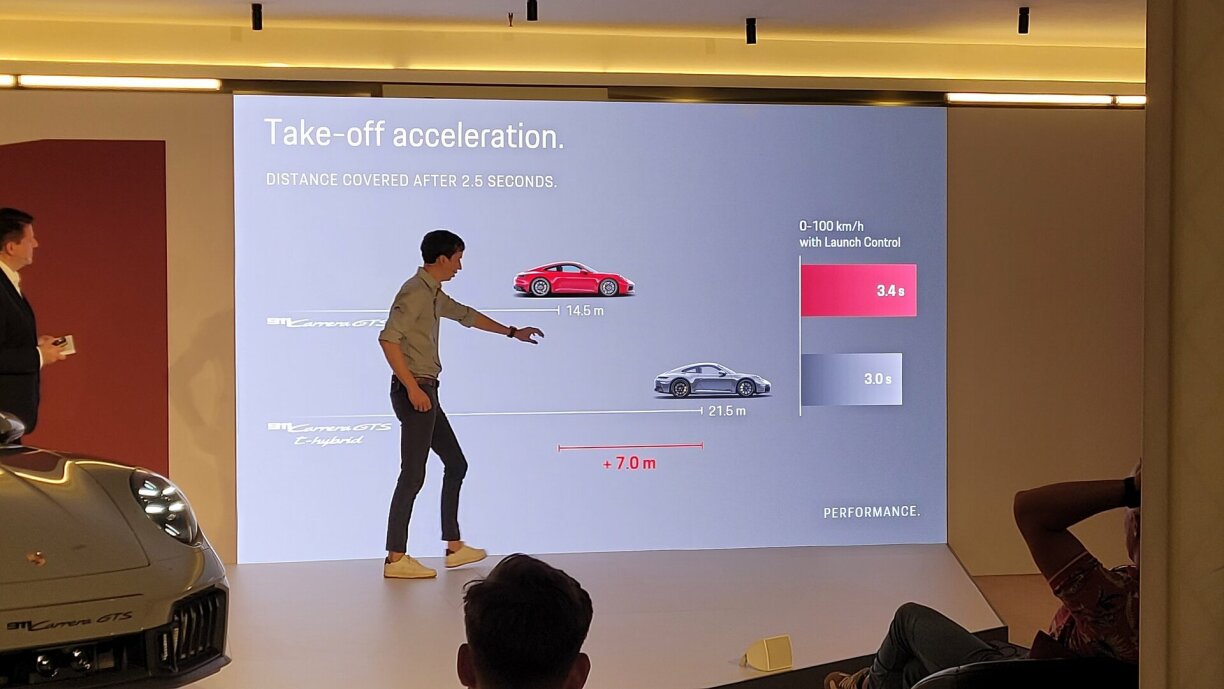 Den 3,6 Liter Boxermotor kënnt ouni elektresch Ënnerstëtzung op 485 PS an 570 Nm Dréimoment. Domat ass e scho méi staark wéi säi Virgänger. Duerch den t-Hybrid-System kënnt en op net manner wéi 541 PS a 610 Nm, deemno 61 PS méi wéi am 992.1. De Sprint vun 0 op 100 geschitt an 3 Sekonnen, an ass deemno och nach emol 0,4 Sekonne méi féx.