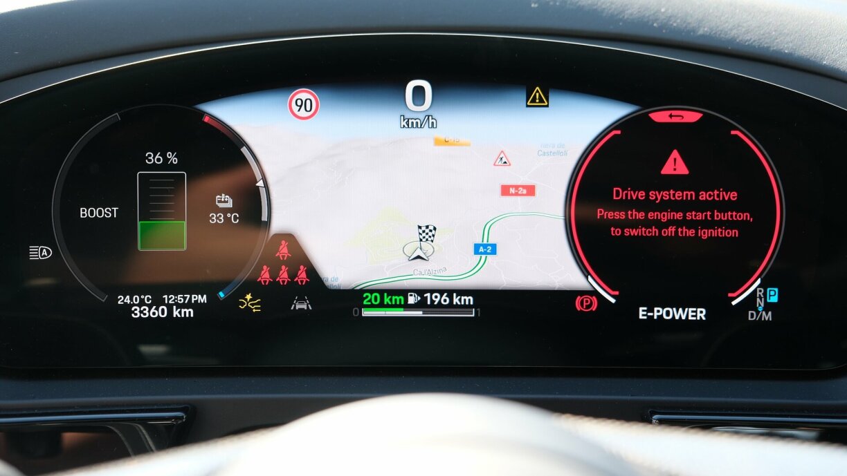 Reng elektresch kënnt ee maximal bis zu 90 km an d’25,9 kWh-Batterie soll een ënner 2,5 Stonnen mat 11 kw kënnen op 100% oplueden. Dat konnte mer awer an där kuerzer Zäit wou mer de Cayenne haten, net testen.