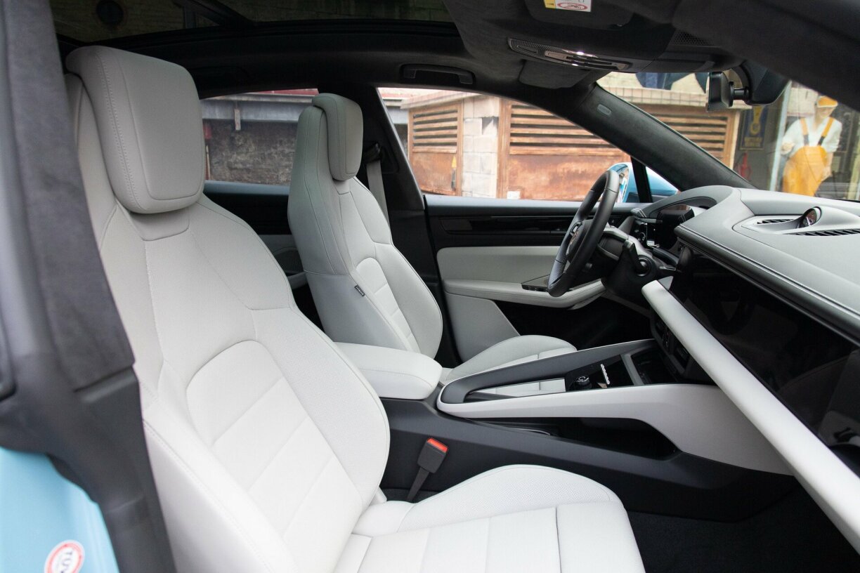 An do gëtt et da méi buedemstänneg, wann een dat bei engem Porsche iwwerhaapt esou nenne kann. D’Basisversioun heescht ganz einfach „Macan“ ouni Zousaz, a kënnt als eenzege Vertrieder mat rengem Heckundriff. Manner Leeschtung a just ee Motor heeschen awer och manner Gewiicht (-110 kg) a manner Verbrauch an domat méi Reechwäit. A well de selwechten 100 kWh-Akku am Ënnerbuedem stécht, klëmmt d‘Reechwäit no WLTP Norm op 641 km. Iwwerpréiwe konnt ech et an där kuerzer Zäit wou ech den Auto hat awer net.