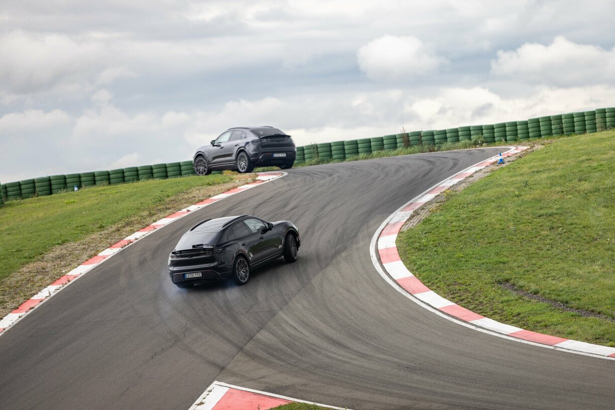 Ob d’Porsche-Fans sech fir e reng elektresche Sport-SUV begeeschtere wäerten, muss sech nach weisen. Dat bescht Mëttel dofir, ass einfach eng Kéier matzefueren. Selwer um Virseriemodell ze fuere war nach net méiglech, en éischten Androck konnt ech mer vum Bäifuerersëtz aus maachen. An dat op der Wierksstreck zu Leipzig mat engem vun de Porsche-Ingenieure perséinlech hannert dem Steierrad. An do bleift engem d’Loft ewech.