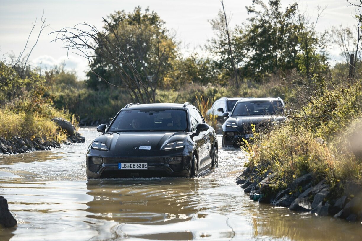 Ech hätt op “besser net” getippt, ma bei Porsche wollte se eis dann awer weisen, dass de Macan och nieft der Rennstreck eng gutt Figur mécht. Den Offroad-Fuermodus ass net just fir schéin ze maache: ob géi Hiwwelen erop oder Waasser-Duerchfaarten: de Macan kann et, an dat ass gutt ze wëssen.