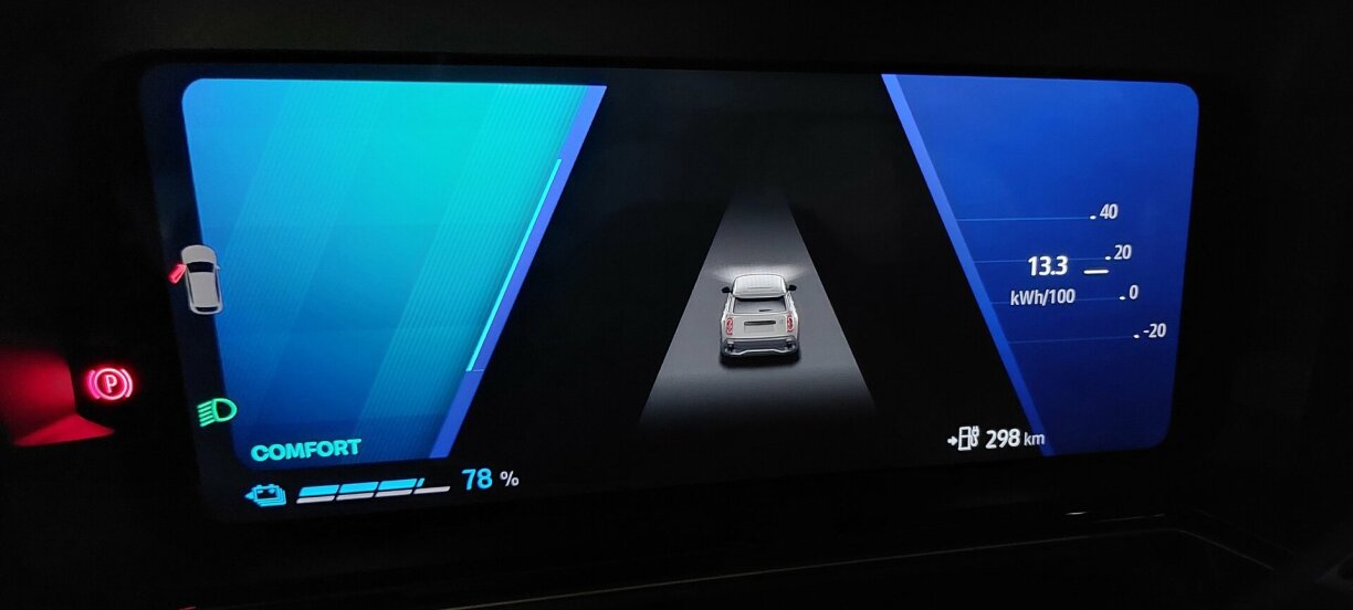 An dat geléngt déi Kéier tatsächlech. Koume mir dach op eisem ofwiesslungsräiche Roadtrip mat Passagen duerch Stad, iwwer Land an och Autobunn op e Verbrauch laut Bordcomputer vun 13.5 kw/h. Bravo. Dat vläicht och wëll den R4 just 1500kg op d’Wo bréngt. Fuerleeschtungen si sprëtzeg a bei 150 ass Schluss. Bon beim Luede mat tëscht 11 an maximum 100kw do wär méi dran.