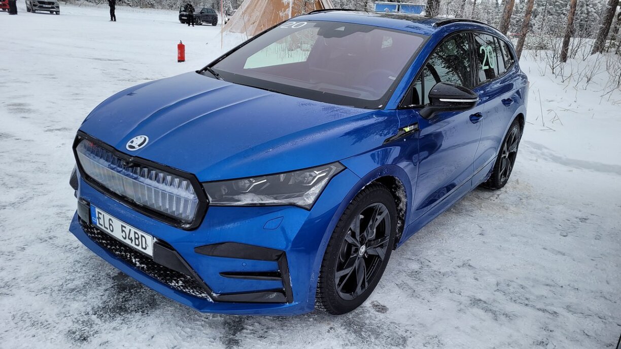 Mam Skoda Enyaq ass et och méiglech Fuerspaass op Äis ze hunn, an no e bëssen Übung war och hei e propperen Drift kee Problem méi, ma et mierkt een dann awer och dat zousätzlecht Gewiicht, wat een duerch d’Batterië mat sech ronderëm schleeft, dat zum Beispill wann een den Auto vun enger Kéier an déi nächst geheie wëll. Do muss een dann anescht drun erugoen, well wann déi 2 Tonnen um Äis mol bis a Beweegung sinn, kritt een déi net mir näischt dir näischt mat engem Lenkbefeel nees an déi aner Richtung manövréiert. Do muss een da schonn e bëssen anticipéieren, wat awer och kee Problem duerstellt... et ass halt just liicht anescht wéi bei engem Octavia oder Superb. Et kéint een et da vum Fuerverhale schonn éischter mam Karoq oder Kodiaq vergläichen, déi duerch hir SUV-Karosserie de Schwéierpunkt méi wäit uewe sëtzen hunn, an doduerch och anescht op e Laaschtwiessel reagéieren, a méi eng Wank-Beweegung mat sech bréngen.