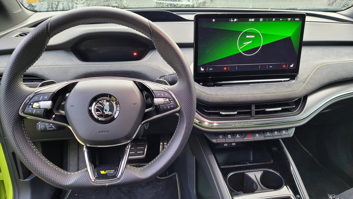 Hei huet Skoda exzellent Aarbecht geleescht. De Cockpit wierkt héichwäerteg an et gouf ënner anerem vill Alcantara verschafft, och do, wou ee mol méi dacks hautkontakt mam Auto huet. Z.B. wann een den Touchscreen bedénge wëll an ee seng Hand um Tableau de Bord ofstäipt. Et ass just e klengen Detail, deen awer e Gefill vun Héichwäertegkeet hannerléisst.