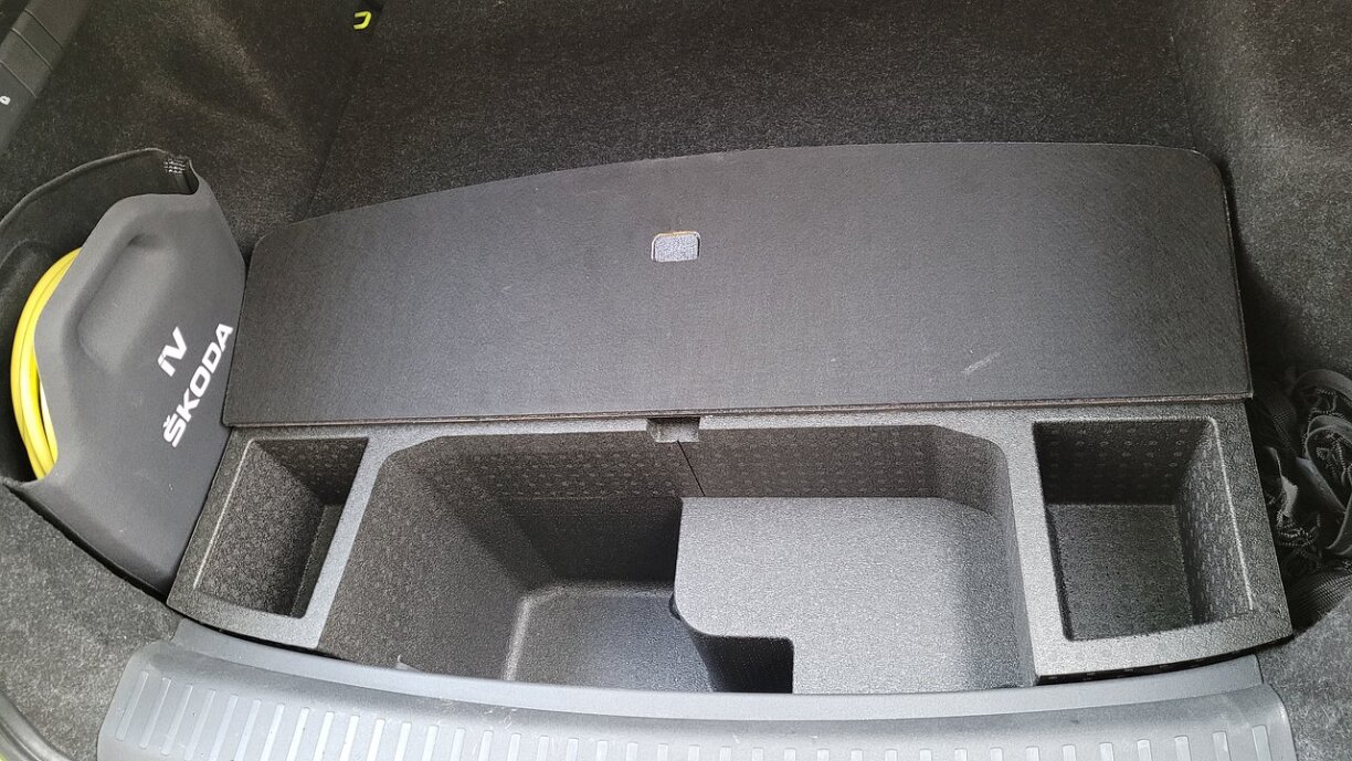 Zum normalen Enyaq verléiert een zwar e bëssen u Volumen an der Mall, besonnesch bei ëmgeluechte Sëtzer, ma mat 570, respektiv 1610 Liter ass ëmmer nach masseg Plaz. Just an der Héicht geet do eben e bësse verluer. Gutt ass dann awer och, dass een ënner dem Mallebuedem nach Plaz huet, fir z:B. de Luedkabel ze verstauen, oder soss déi eng oder aner Klengegkeet, déi dann net an der Mall hin an hier rutscht beim Fueren.