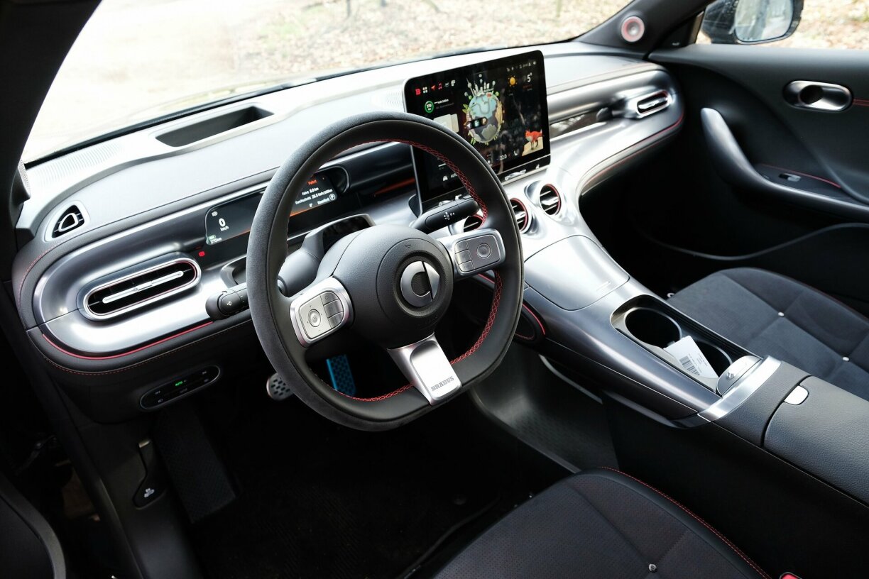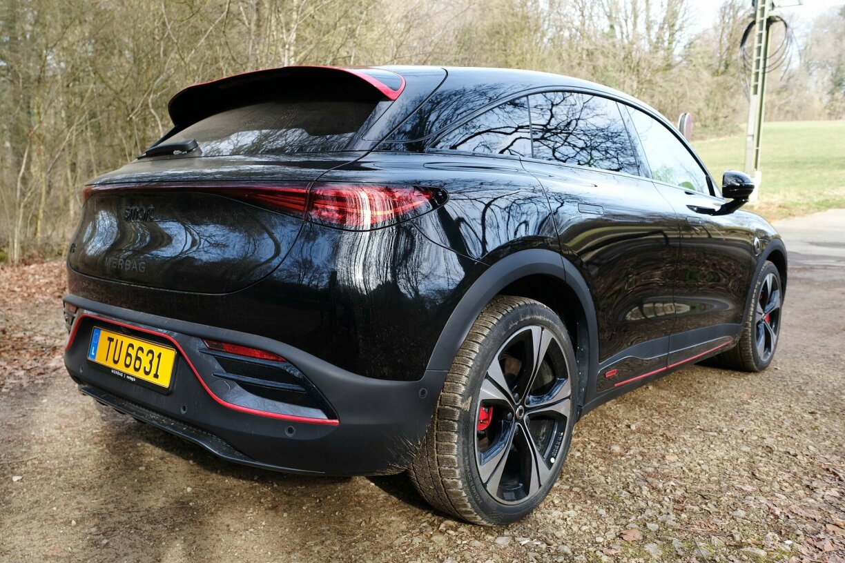Et steet net nëmme Brabus drop, et stécht och Brabus dran! 428 PS Spëtzeleeschtung an eng Beschleunegung op 100 an nëmmen 3,7 Sekonnen. Mäi leschten Testauto, deen dat konnt, huet bal 3 mol esouvill kascht. Traktioun a Stroosselaach si wierklech kee Problem, just d’Gewiicht deet an de Kéieren d’Pneuen nawell vill schaffen. Natierlech ass een net dauernd mat schwéierem Fouss ënnerwee, dee Moment packt den #3 ëm déi 400 km mat enger Batterie. Erfreelecherweis geet d’Luede relativ séier; 150 kW packt e maximal, relativ dacks gëtt d’100er Mark geknackt. An esouguer um Typ 2-Stecker gëtt net gelappt, mee mat vollen 22 kW gelueden.